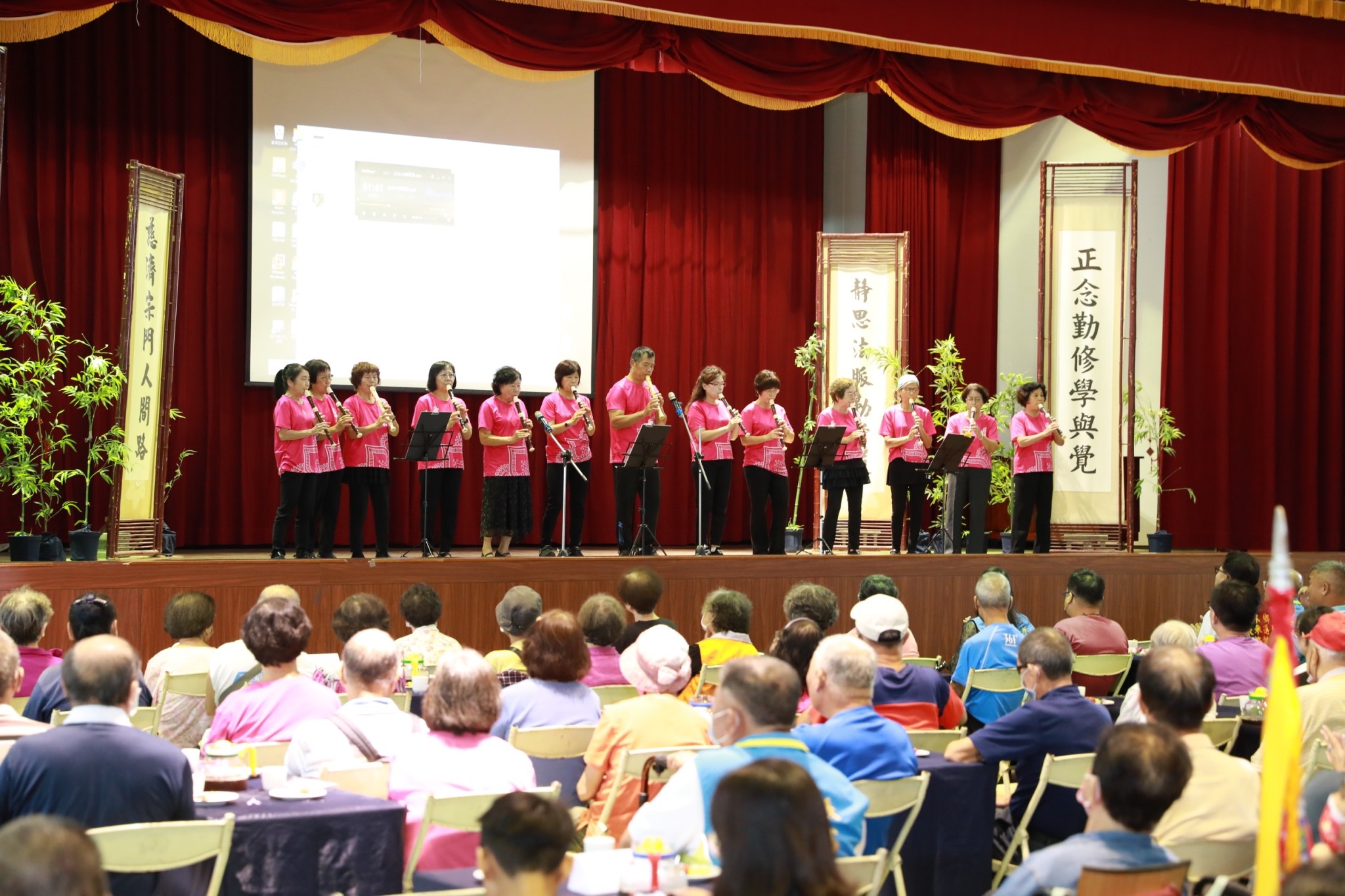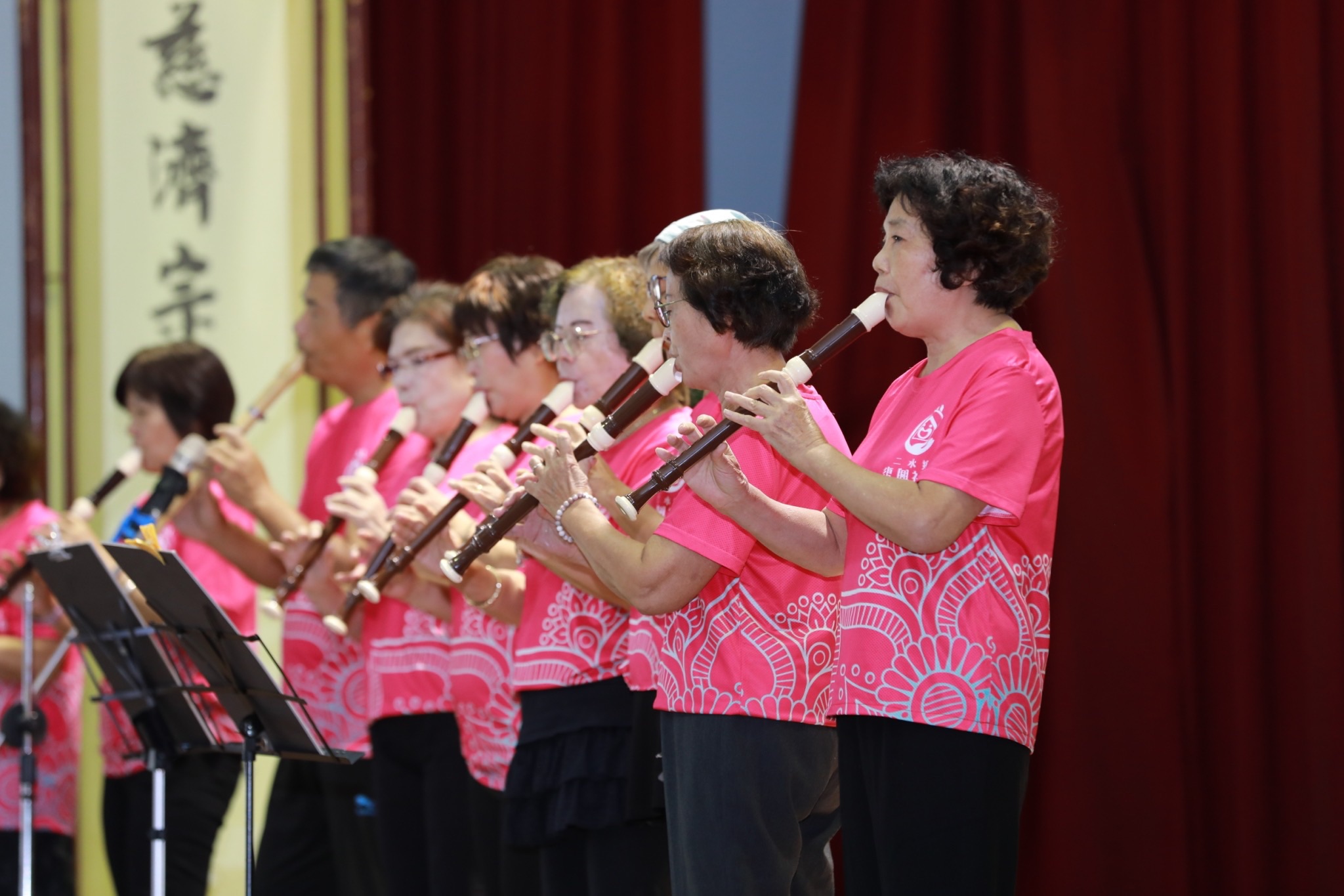 活動開場由熱鬧的「車鼓陣」,為今天感恩茶會揭開序幕。一首又一首耳熟能詳的民俗歌謠,瞬間將現場長者的目光吸引。緊接著由二水鄉復興村直笛班,為大家帶來悠揚的樂音演奏。