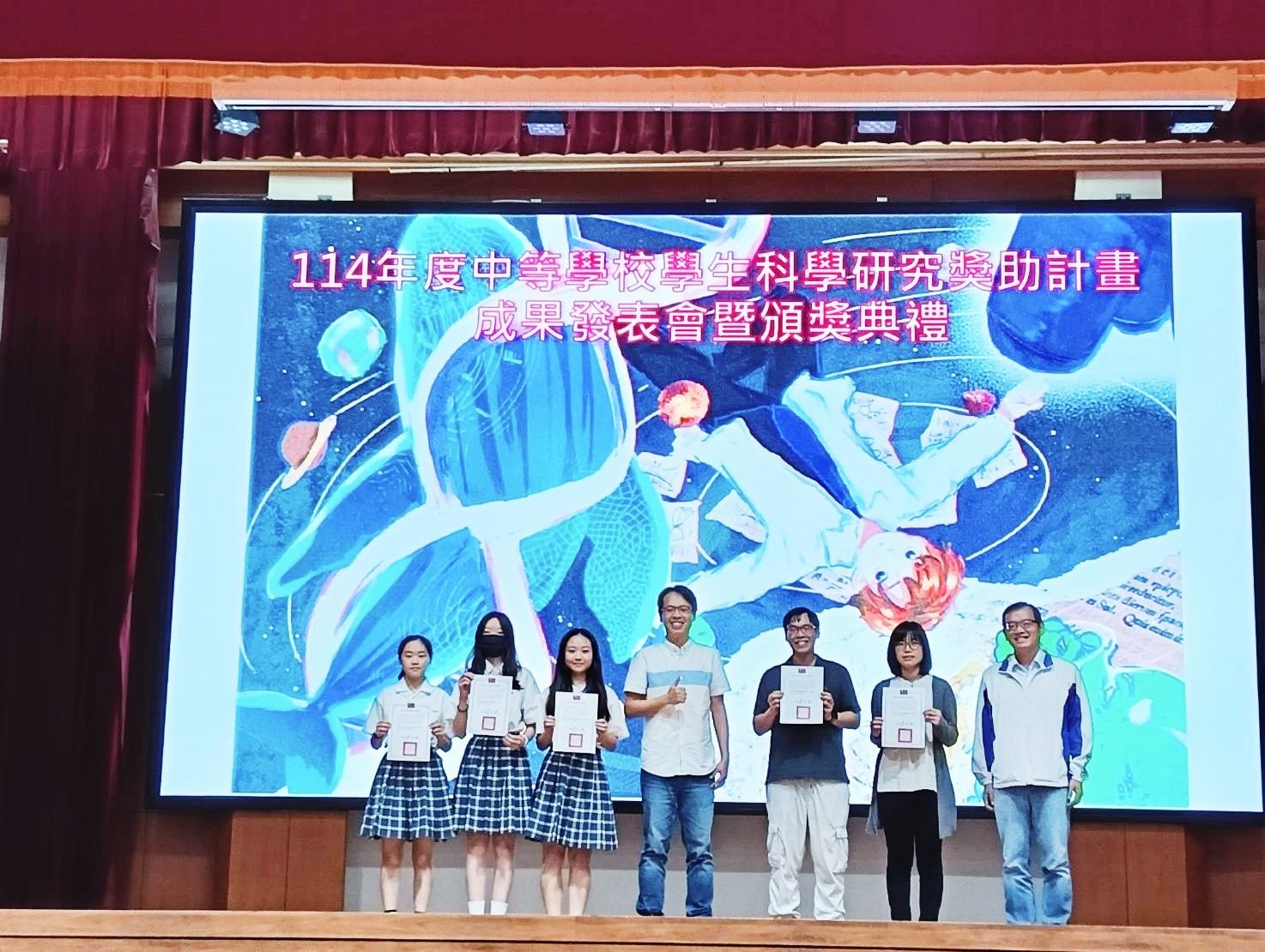 臺北市政府教育局今(26)日於臺北市立大直高中辦理114年度臺北市中等學校學生科學獎助計畫成果發表暨頒獎典禮,今年全市共有367件研究計畫報名,涵蓋數學、物理、化學、生物、地球科學及應用科學等領域,最終共有96件優秀作品脫穎而出,研究主題多元,從AI應用、永續能源到生醫探究,充分展現臺北學子跨域創新與探究能力。