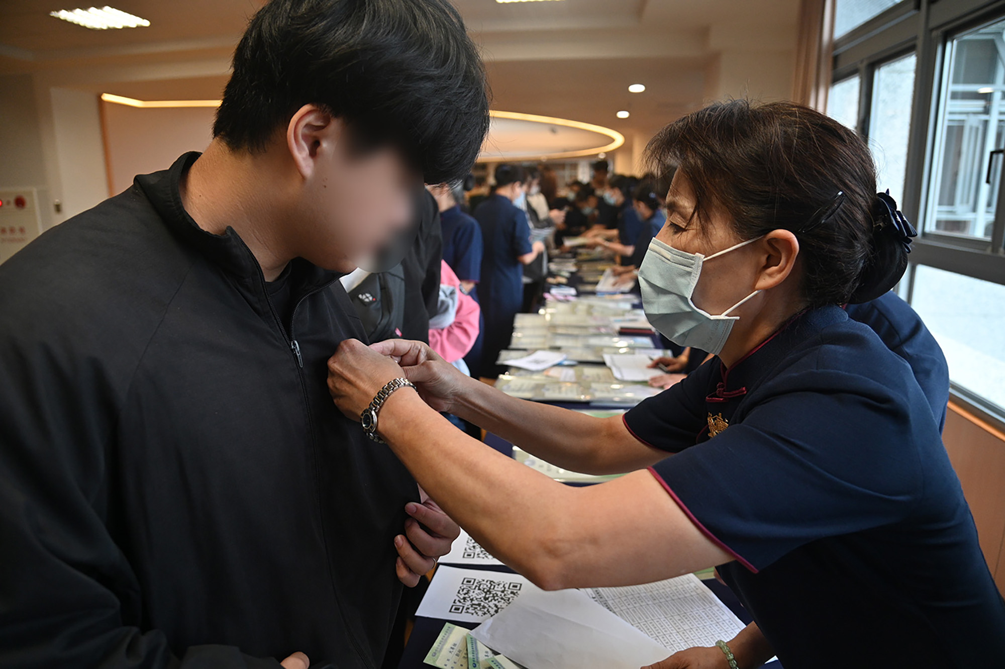 簡同學為了減輕母親的負擔,利用課餘時間打工,亦「兄代父職」協助媽媽照顧年幼手足,儘管生活艱困卻力爭上游,目前已經考取護理師證照。簡同學上台感恩慈濟從2022年關懷至今,他表示,期盼自己趕快長大,能幫家裡分擔家計,未來會回饋社會,報答慈濟大家庭給我的溫暖。