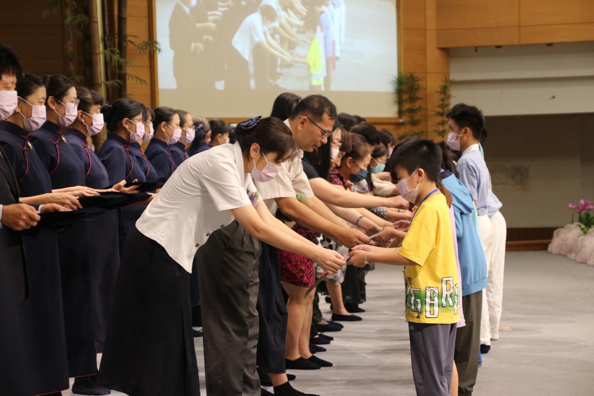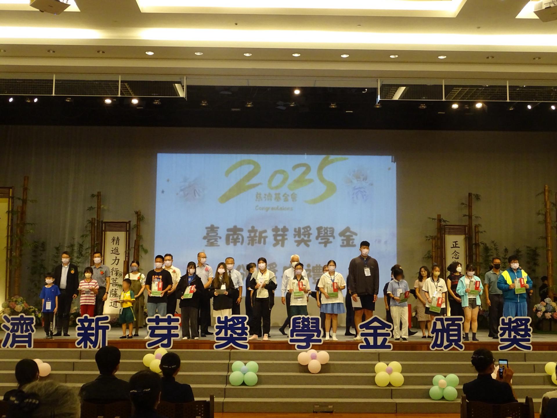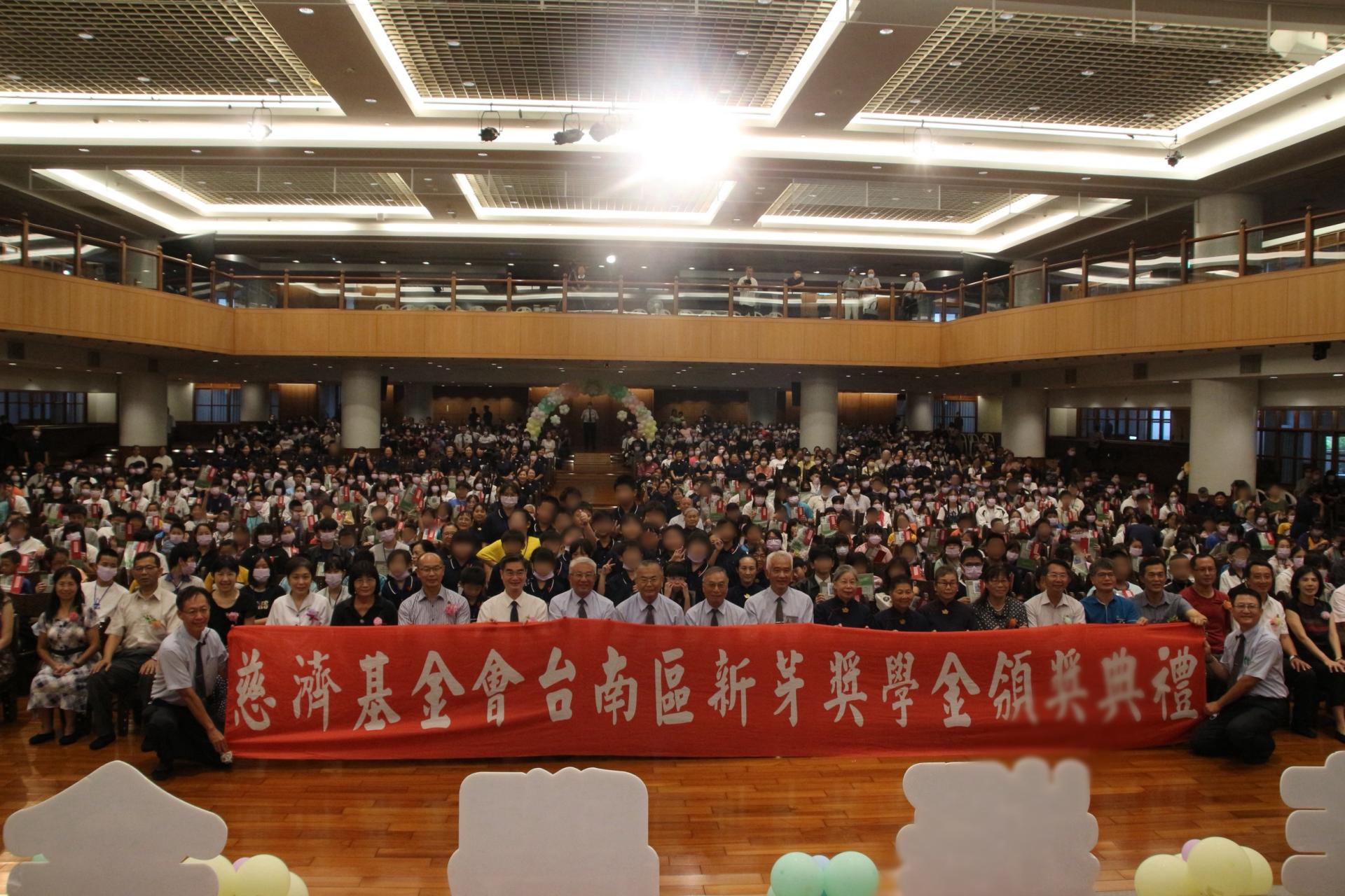 台南慈濟10月26日上午在台南靜思堂舉辦慈濟新芽獎學金頒獎典禮,共300多位學子獲獎。獲獎學子中,翁同學雖然罹患肌肉萎縮症,經過自己努力以及父親養育、慈濟的陪伴,如今是國立大學大一新生。慈濟成立課輔班為照顧戶學子充實課業,本次獲獎學子有2位來自玉井慈濟課輔班的同學,他們認真學習課業,課餘時間學習樂器,在頒獎典禮上演奏大提琴,展現自信與傳遞溫暖。台南市教育局主秘陳宗暘、慈濟大學校長劉怡均、台南慈中校長姚智化出席頒獎並勉勵學子。