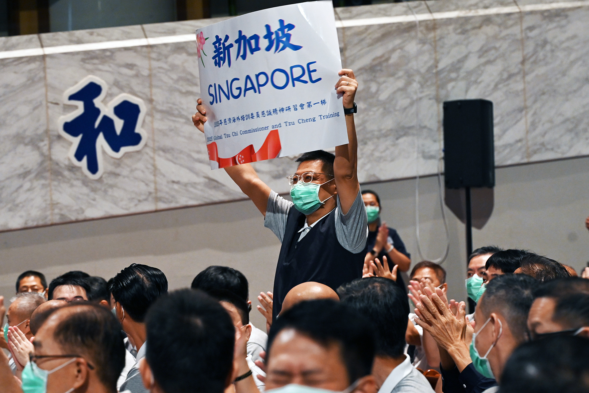 「各位親愛的家人們,您好,搭乘編號1013『一人一善』的大愛法船即將啟航。」司儀許穎鐸開場歡迎海外志工一起上法船,揭開序幕。德淵法師用多國語言歡迎海外學員,祝福大家:「人生重要的價值不是錢,是那一分大愛,學習證嚴上人用大愛的心去普愛天下眾生。」師父勉勵學員受證回到僑居地,要記得時時刻刻力行在菩薩道上。