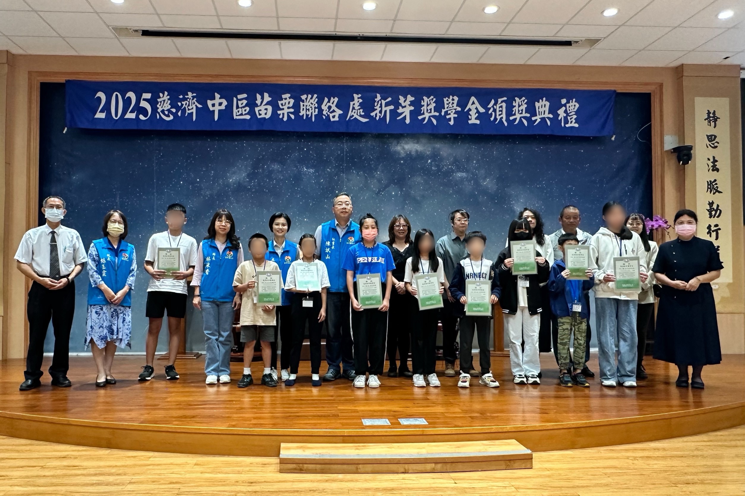 佛教慈濟慈善事業基金會長期關懷弱勢家庭學生的就學需求,11月1日上午在苗栗慈濟園區舉辦「新芽獎學金」頒獎典禮,鼓勵學子在逆境中堅持向學、勇敢追夢。縣府祕書長陳斌山表示,「新芽獎學金」不僅提供孩子們穩定的學習環境,更在他們心中播下善的種子,期盼未來能將這份愛與關懷回饋社會,進而促成良善循環,讓希望在社會各角落持續萌芽、茁壯。
