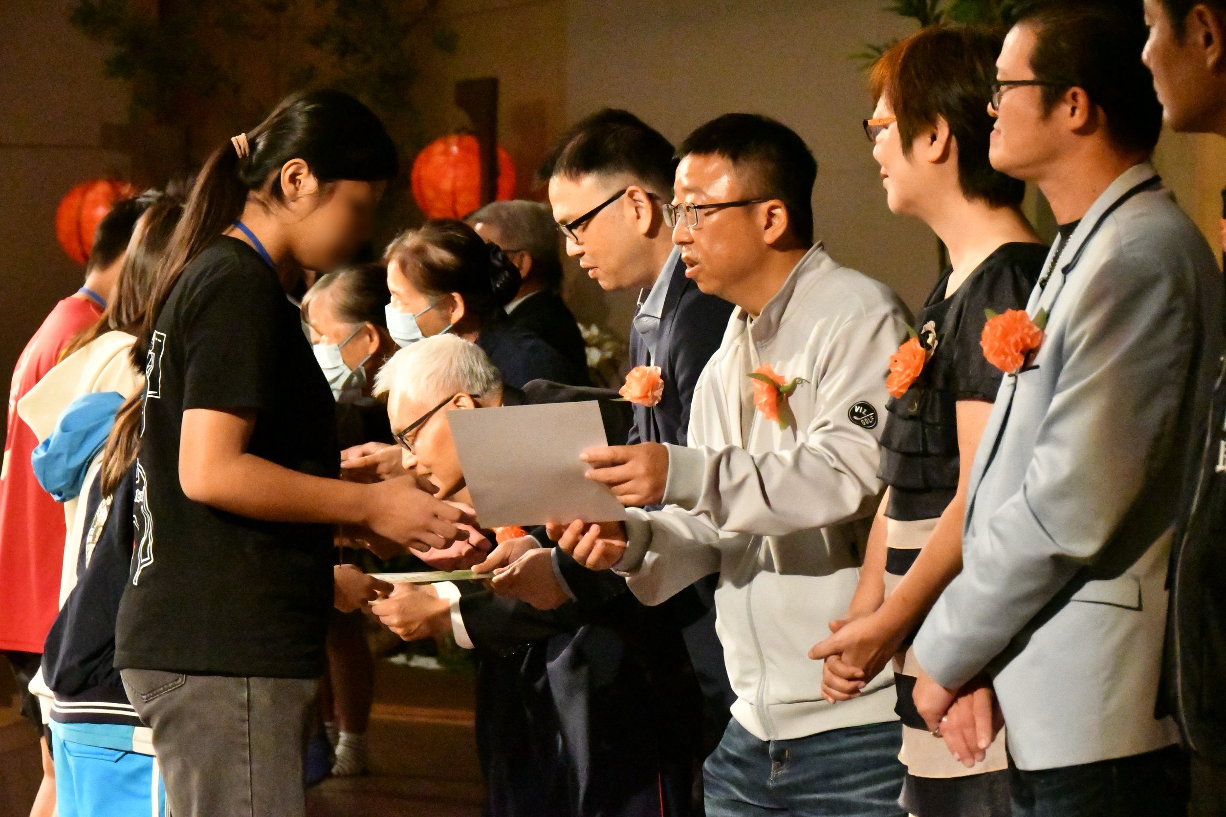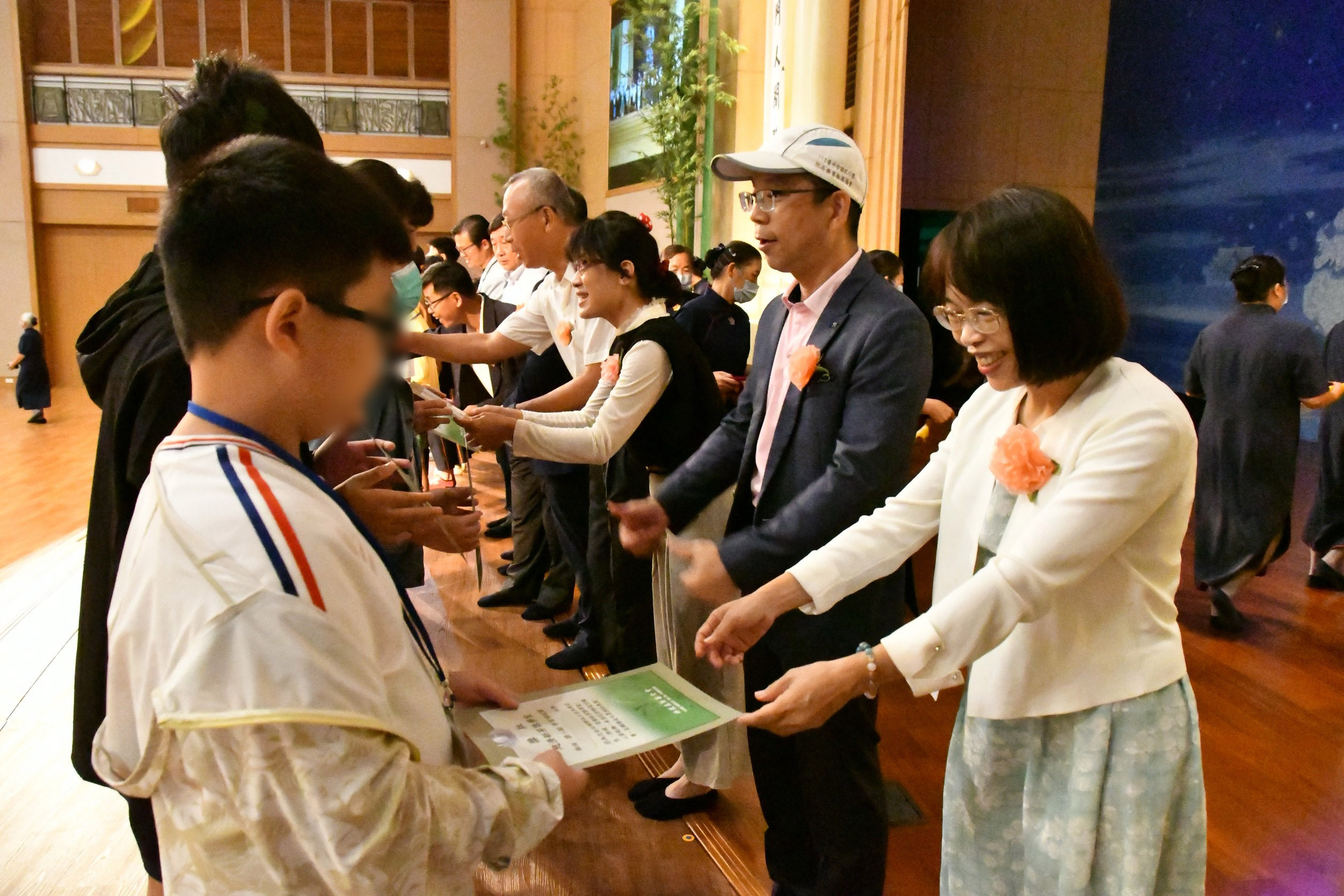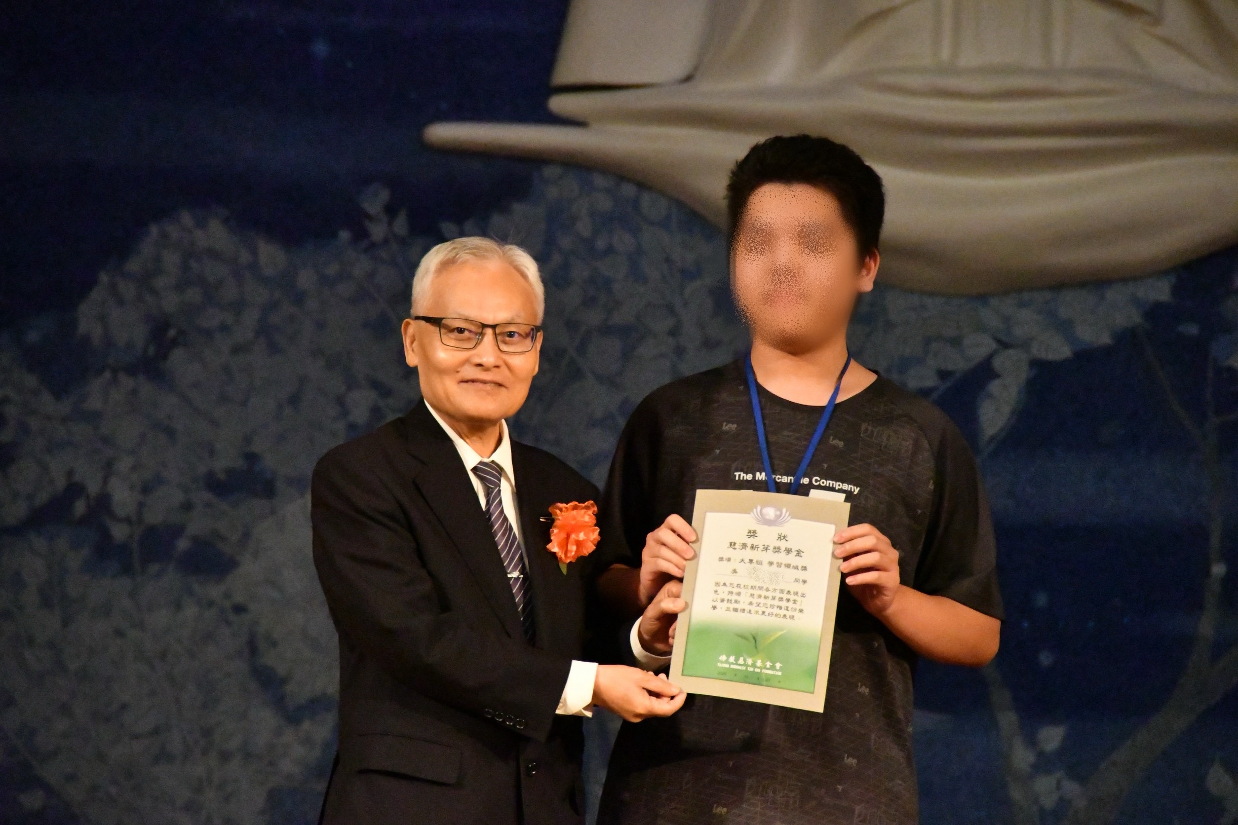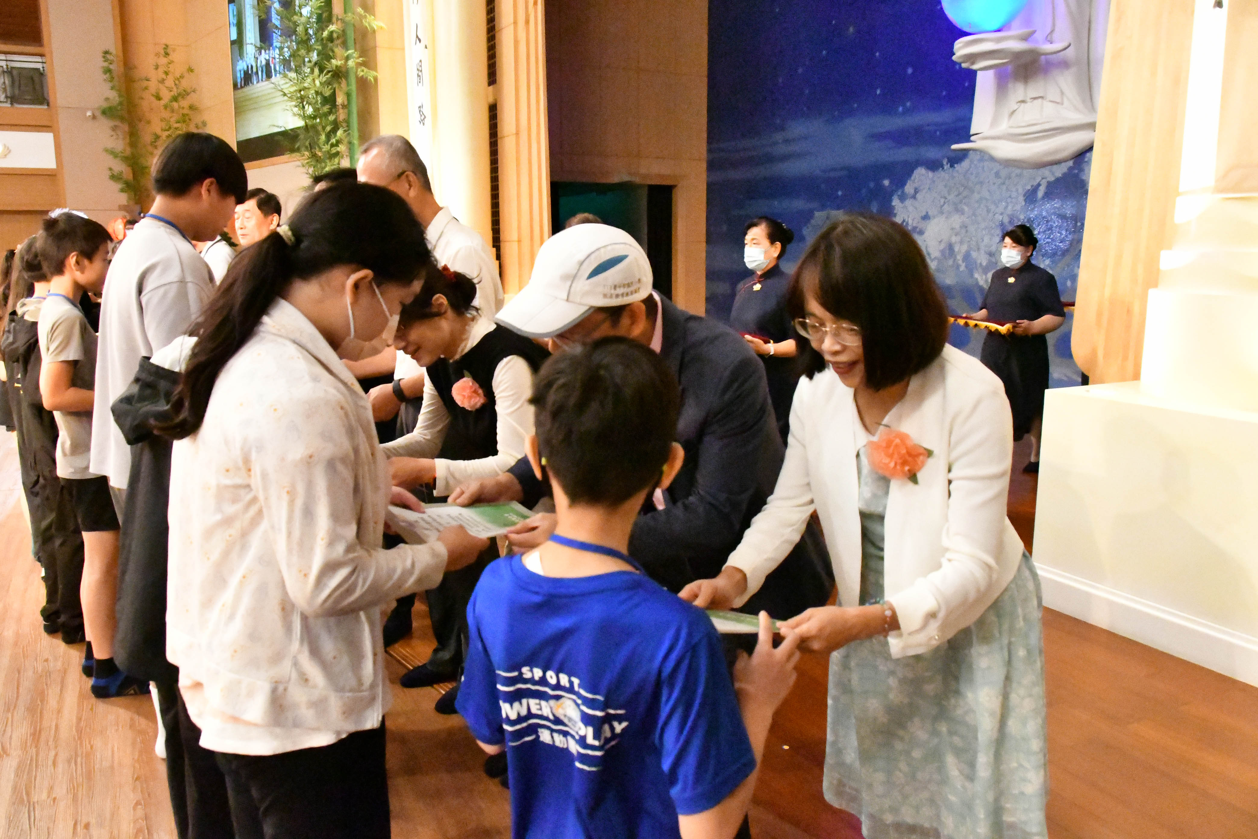 慈濟慈善事業基金會副執行長張宗義鼓勵同學:「不管今天得獎的項目是哪一項,大家要記得,慈濟的師姑師伯跟你們非親非故,純粹是基於一分愛護和照顧大家的心,就像一顆種籽種入土中,也要給予滋養水分,讓它茁壯成大樹。」他希望大家在接受這分愛的同時,未來也能懂得去為社會付出,像吳同學一樣,去接受心中懷有的理想跟希望去努力達成。