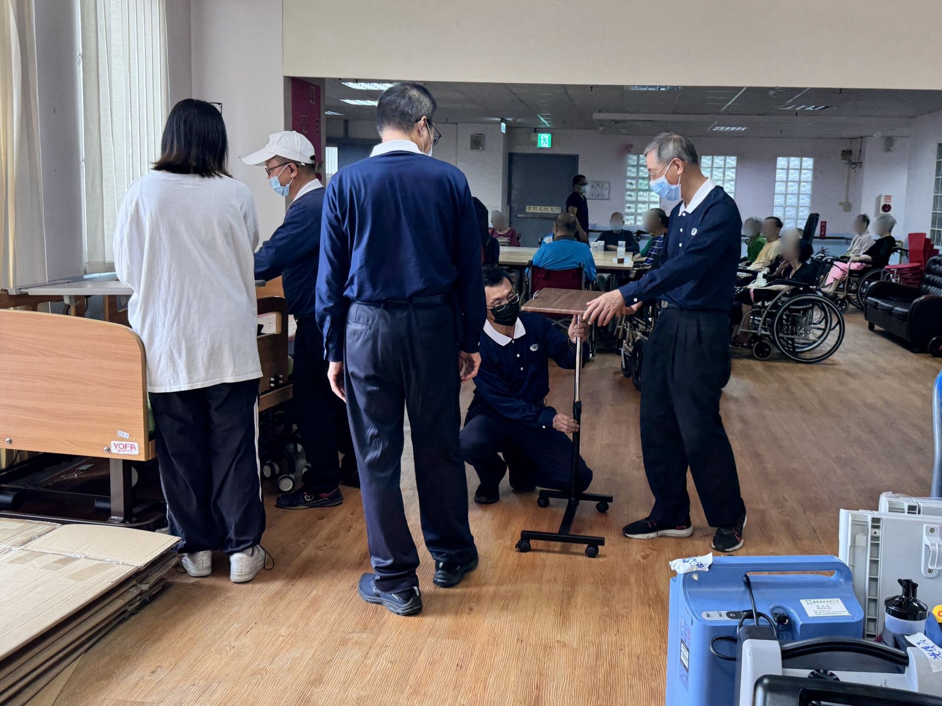 慈濟獲報後,分別於10月13日、16日以及11月5日送來電動移位機、抽痰機、噴霧機、製氧機、氣墊床、移動式洗澡躺椅、消毒鍋、高背輪椅、電動輪椅,以及輪椅座墊、輪椅餐桌、伸縮餐桌、升降餐桌等用品。