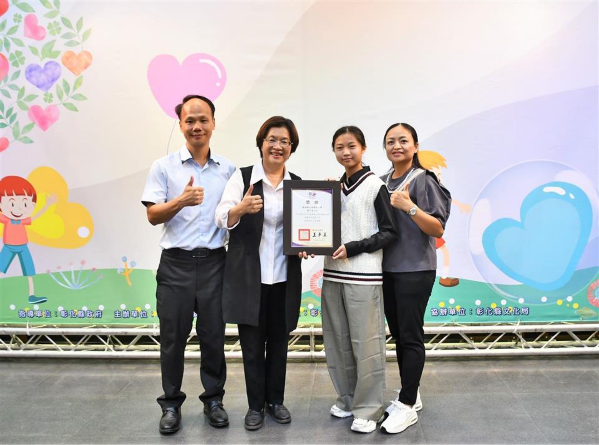 王縣長表示,「童畫心世界畫展」自2009年至今已有17年,這不僅是一場色彩的饗宴,更是孩子們用心說故事的舞台。其中黃同學原本個性內向,也不擅於表達自己的想法,經過這幾年持續參加「童畫心世界畫展」,慢慢找回笑容,也變得更有自信,用繪畫說出屬於自己的勇氣與希望。這就是藝術的力量,讓孩子在創作中找到快樂,點燃生命的光亮。