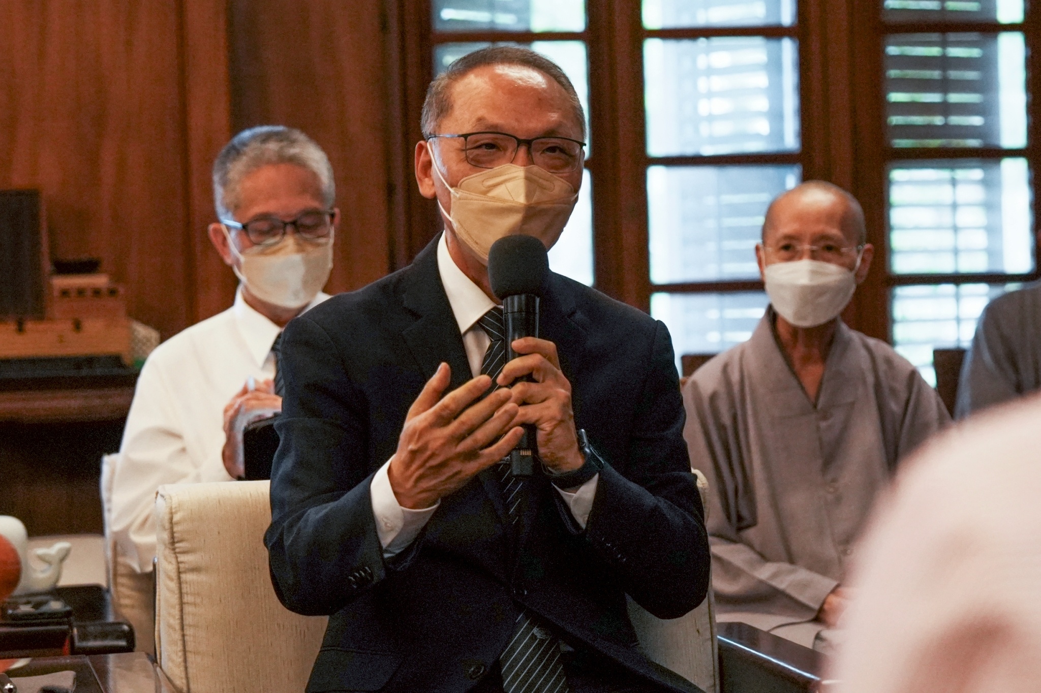 內政部長劉世芳11月15日前往花蓮靜思精舍拜訪慈濟證嚴法師,感恩慈濟在救災與推動防災教育的努力,以及在國際間聽到對慈濟的稱譽,部長也將國際友好夥伴的感謝轉達,並且期待未來跟慈濟有更多的合作與協力。證嚴法師表示這是台灣人的愛心鞏固,台灣以愛以善為寶,慈濟的付出都是本份事。