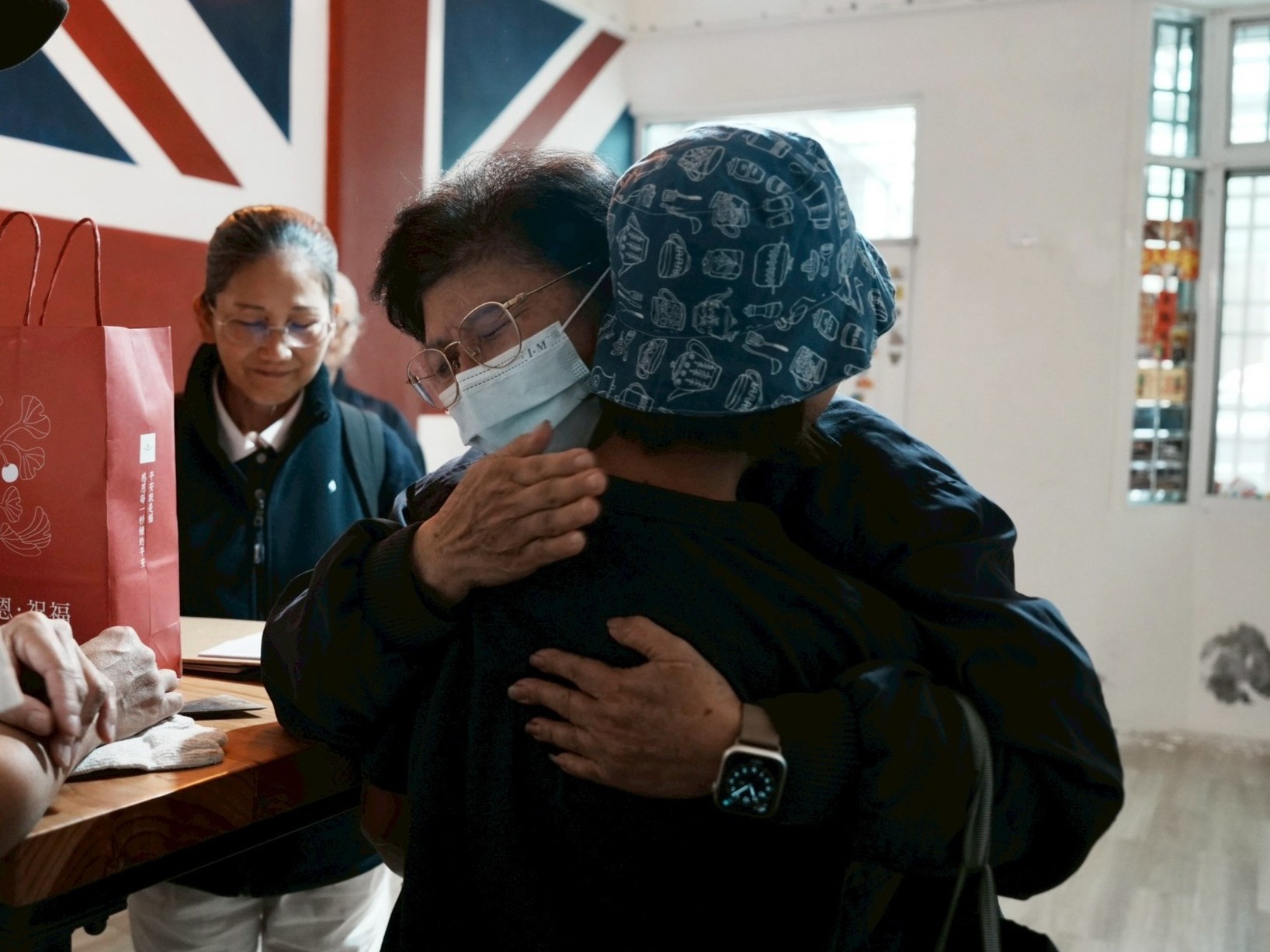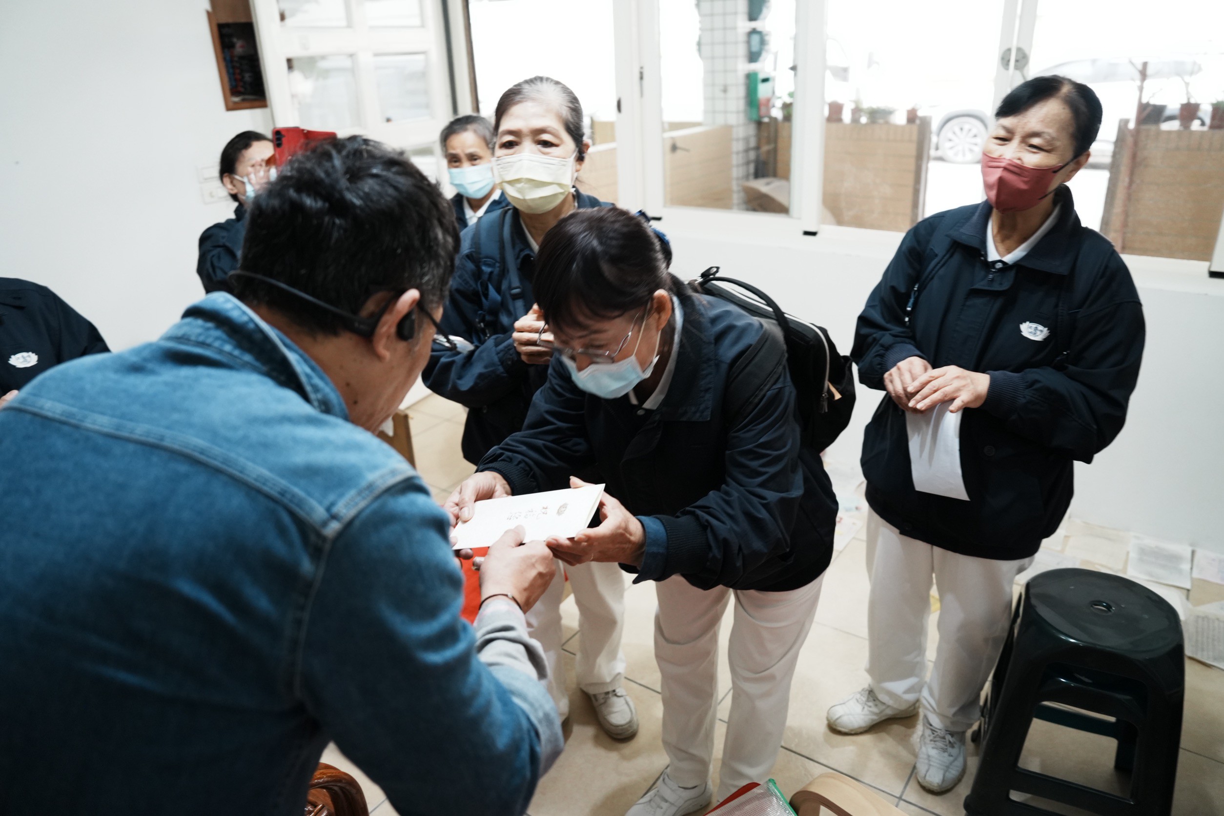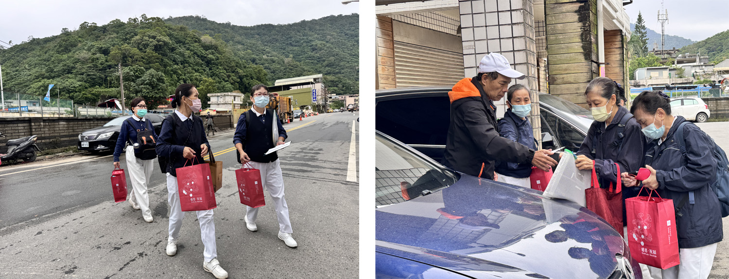 康先生與家人去年剛從海外來到宜蘭定居,去年遇到颱風、這次水淹到二樓地板,感到很無奈。宜蘭慈濟志工11月20日帶著祝福禮來到康先生家。康太太想到後續復原工作忍不住落淚,志工給予擁抱,並獻上祝福禮、耐心安慰。志工說明祝福禮有包含打開就能吃的福慧珍粥、素鬆、蘇打餅,以及可沖泡即食的香積飯、香積麵、湯品、豆漿粉,康太太表示這份禮物很即時需要,因為家裡廚具泡水也無法開伙。