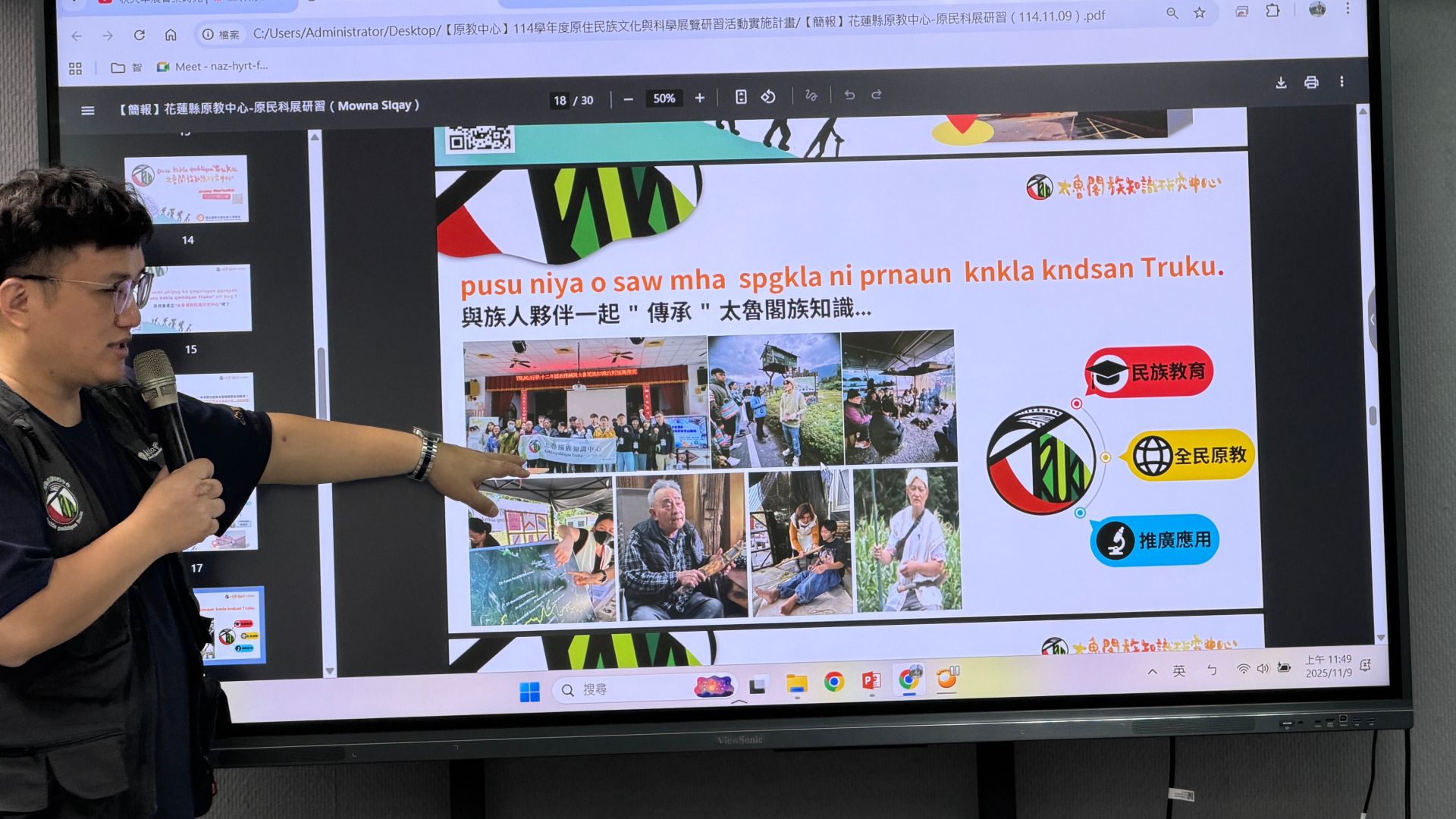 花蓮縣政府教育處114年持續推動原住民族文化與科學教育深化工作,11月9日於教育處課程發展中心辦理「原住民族文化與科學展覽研習活動」,吸引縣內國中小教師參與。研習以「文化 × 科學」為核心,融入部落生活經驗、資訊科技應用與科展探究能力,協助教師掌握如何將傳統知識轉化為科學課程素材,提升原住民族學童的科學素養與文化認同。活動由太魯閣族原住民知識中心蘇浩平老師及花蓮高農林瑞祥老師授課,引導教師從文化觀點切入,建立具文化深度的探究視角。