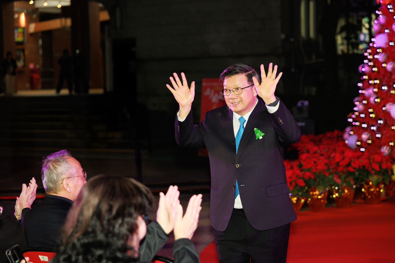 這次點燈主題曲〈向前走〉,特別邀請開心男團黑旋風演唱,他們自然隨性的原住民律動與活力真是難得一見,與來賓的活潑互動更是掀起高潮,象徵著對國北教大130週年邁向國際、迎向美好未來的前景!點燈祈福的貴賓有:教育部常務次長朱俊彰、國北教大校長陳慶和、校友總會理事長粘舜權、億光電子董事長葉寅夫、行天宮志業公益會會長黃忠臣、佛教慈濟慈善事業基金會執行長顏博文、天主教台北聖家堂神父饒志成、松山慈惠堂總策劃長李瑞彬、中華國際嘎檔巴佛教總會慧吉祥、馬偕醫院安寧療護創辦人賴允亮、日本無量光院台灣別院住持融永、芳欣教育基金會執行長謝汶欣、名人堂建築師簡俊卿等,帶領全場齊聲倒數啟動點燈祈福,聖誕樹瞬間綻放萬丈光芒,華麗呈現,現場驚呼驚艷連連!來賓們揮舞著星星棒交織成一片星海,共同見證這個充滿愛與溫暖的時刻,最後齊唱〈平安夜〉,祝福彼此圓滿順遂!