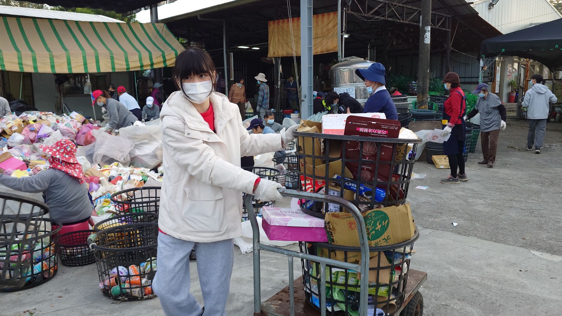 大三心理系學生李聿琪是第二次到環保站,她忙進忙出,熟練的將分類完成的回收物搬運到指定區域。她回憶第一次來時,被大量的回收物嚇到,特別是手搖飲未清洗、殘留珍珠奶茶造成螞蟻與惡臭的情況,讓她在生活中更注意清洗容器、避免使用一次性餐具。
