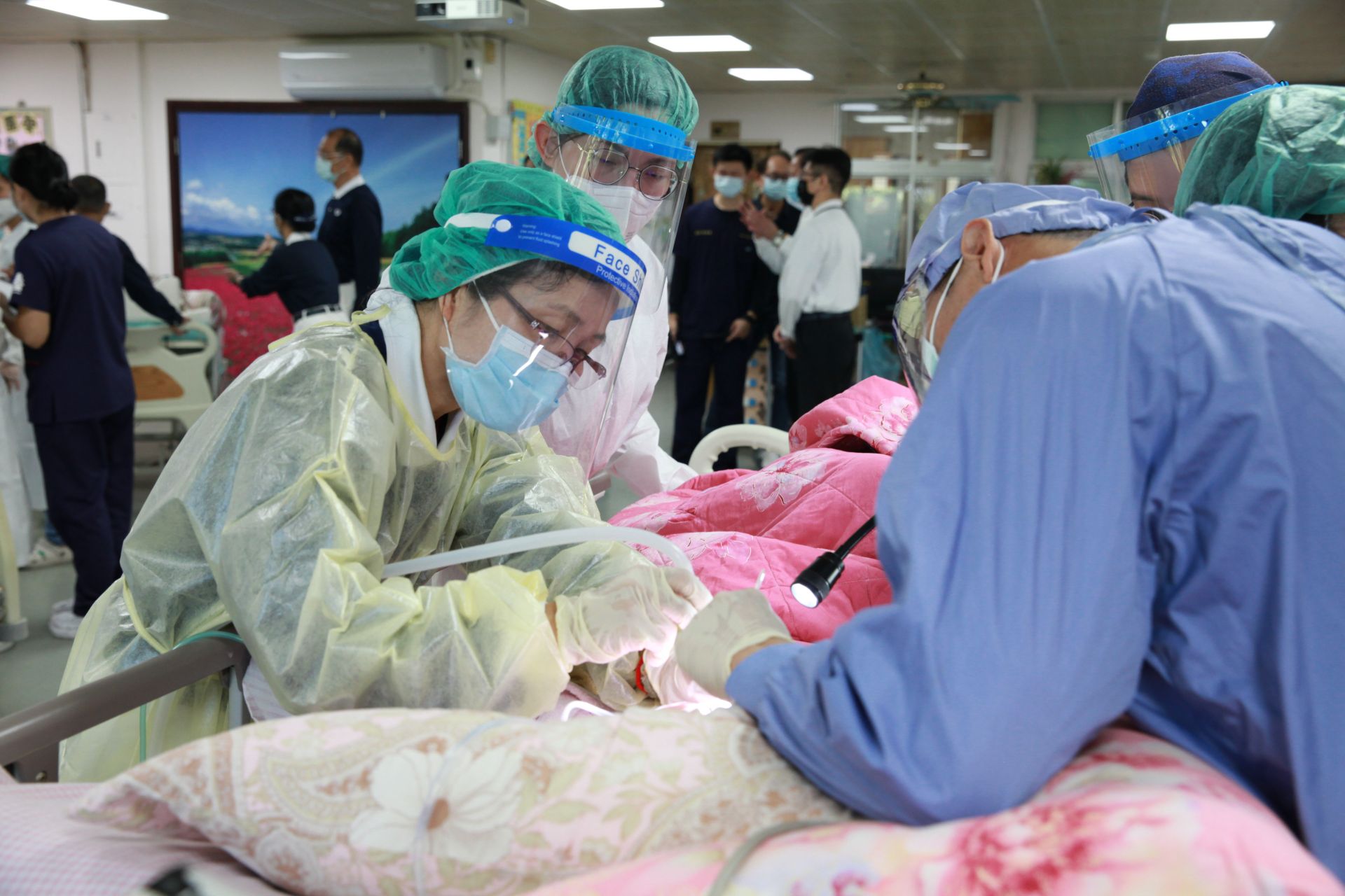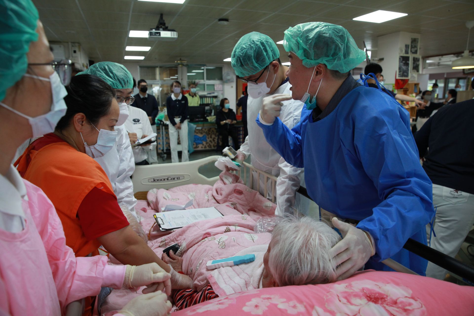 由於義診對象為長期臥病的長者,先由內科郭顯懋、陳俊志醫生逐一的問診、評估,確認安全才可安排洗牙。