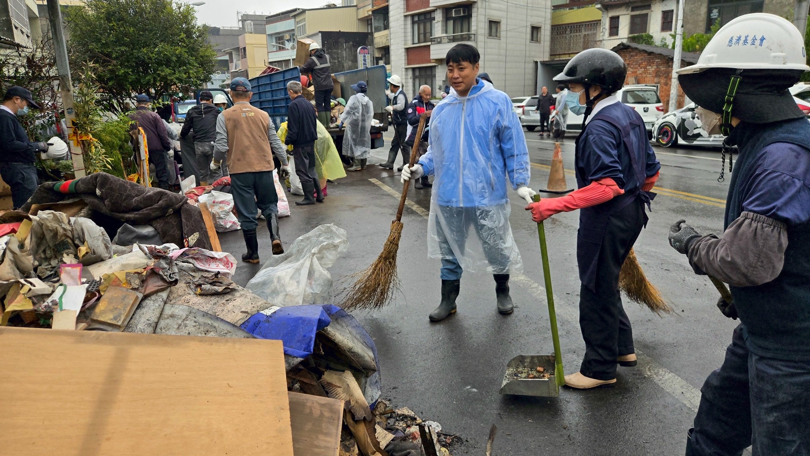 12月27日清晨天空仍下著細雨,慈濟草屯聯絡處動員40位慈濟志工冒雨帶著各項打掃用具,為受災戶清掃家園及清理被燒燬的廢棄物,與受災住戶及其晚輩一起投入清理家園工作。