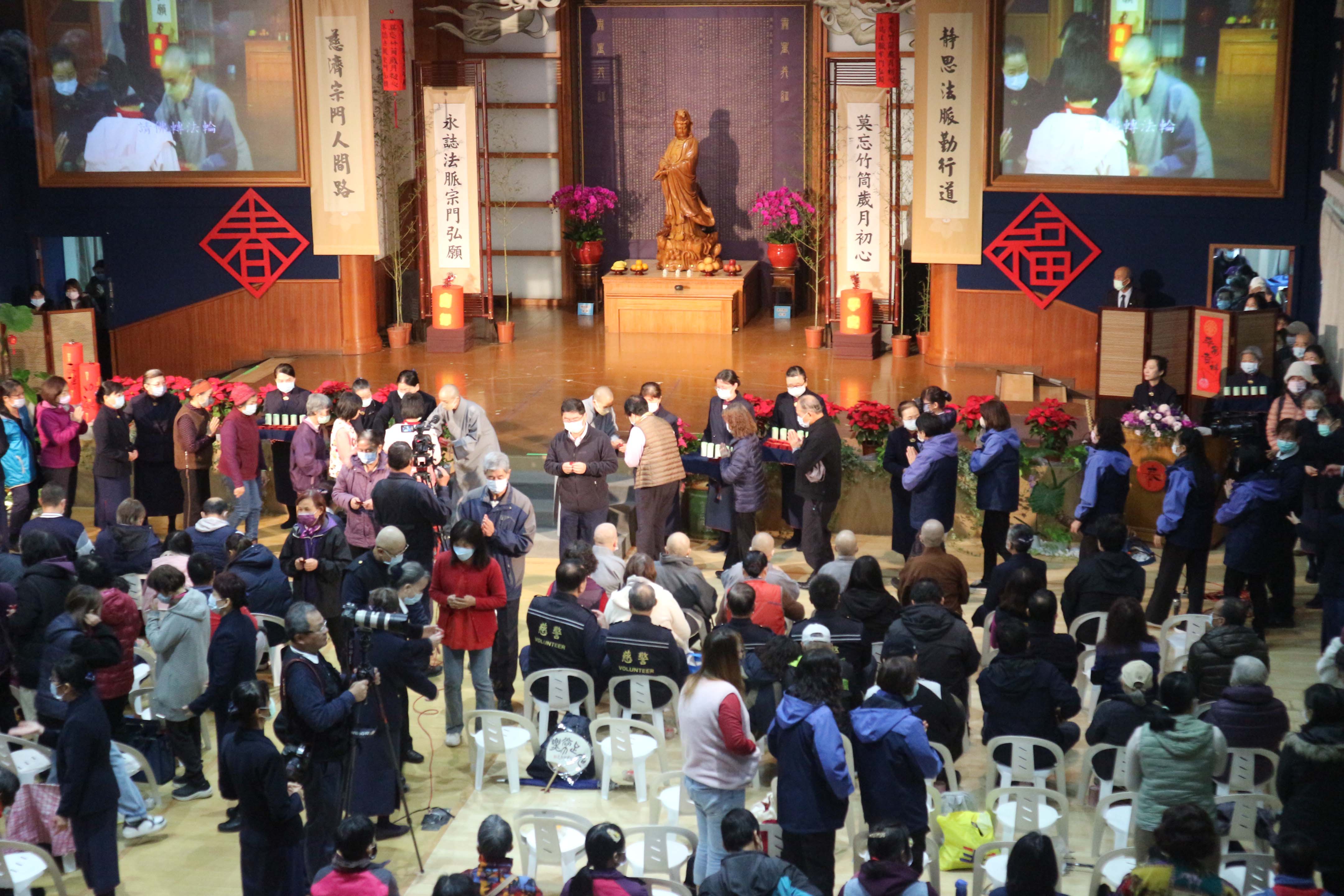 靜思精舍德杭法師、德璒法師帶來證嚴法師以及全球慈濟人的祝福,德杭法師表示,透過大藏經回顧了2025年全球發生的事情,看到了世界上這麼多的災難,雖然災難很多,但是我們也看到了希望,德杭法師表示,九月下旬前往光復進行清掃時,除了慈濟人之外,也看到許多自發帶著打掃工具前來幫忙光復鄉親清掃家園的熱心民眾,搭乘的那班列車,終點不是光復,當列車一抵達光復,全部人都下車了,當時看到的是人與人之間互助的美善及溫暖;德杭法師也邀請在場鄉親每日都能發一善願,讓社會更祥和!