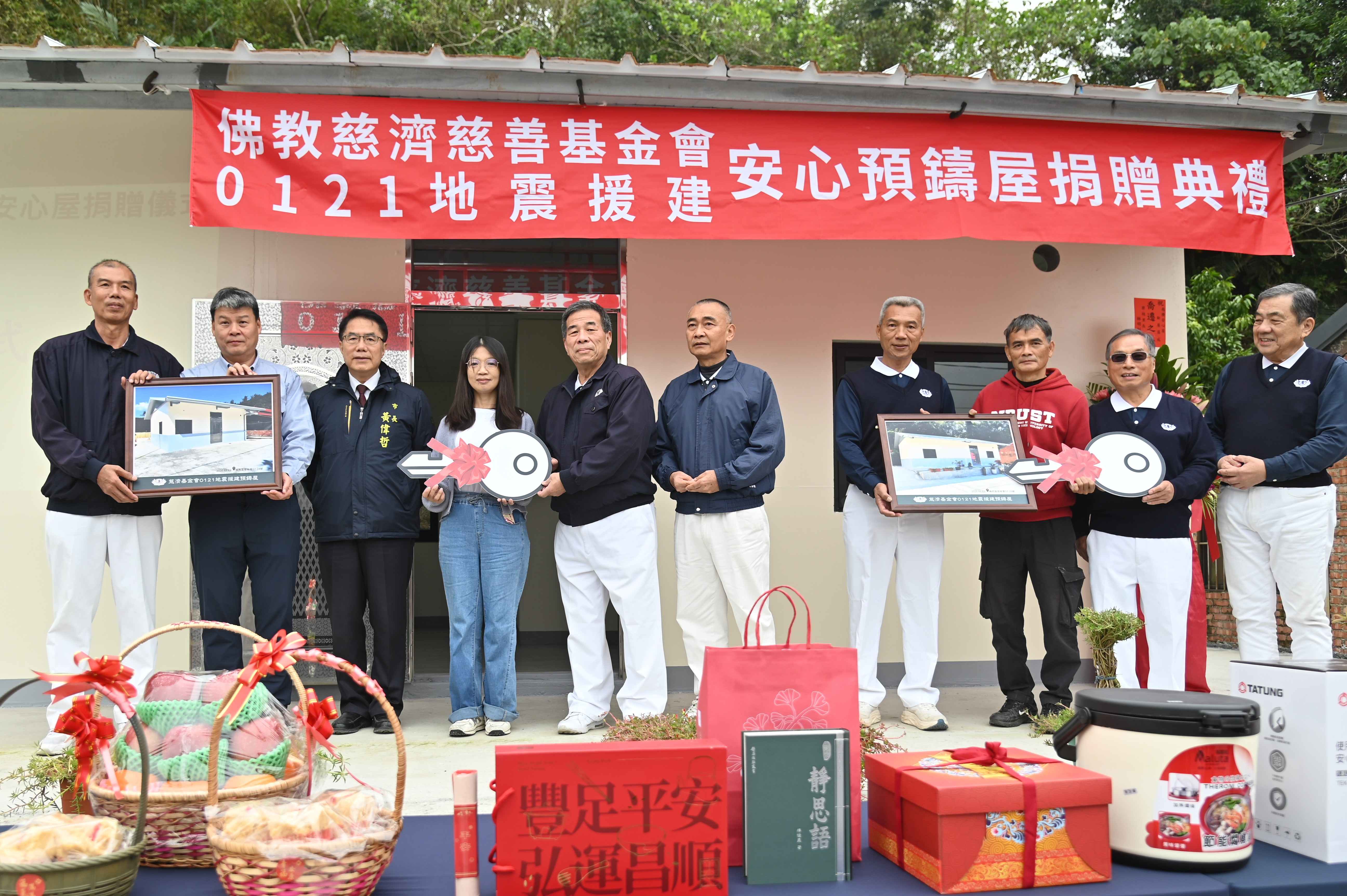 慈濟基金會指出,0121地震發生後,慈濟在第一時間啟動災害應變關懷,當天凌晨即支援熱食,後續提供福慧隔屏、福慧床、毛毯等物資。2025年2月5日起啟動非紅黃單住家修繕,截至2月27日共投入5205人次協助楠西區、玉井區修繕工作,完成2百多戶階段性驗收完工,後續由臺南當地修繕志工持續接力,目前共完成269戶驗收完工。針對災戶中長期計畫,慈濟為嚴重受損民宅住戶援建「慈濟大愛屋」,包含原地重建之「獨棟預鑄安心屋」6戶、異地重建之大愛福利園區。前者已完工今日交屋,後者位於楠西區楠西段,已於2025年6月進行動土儀式。