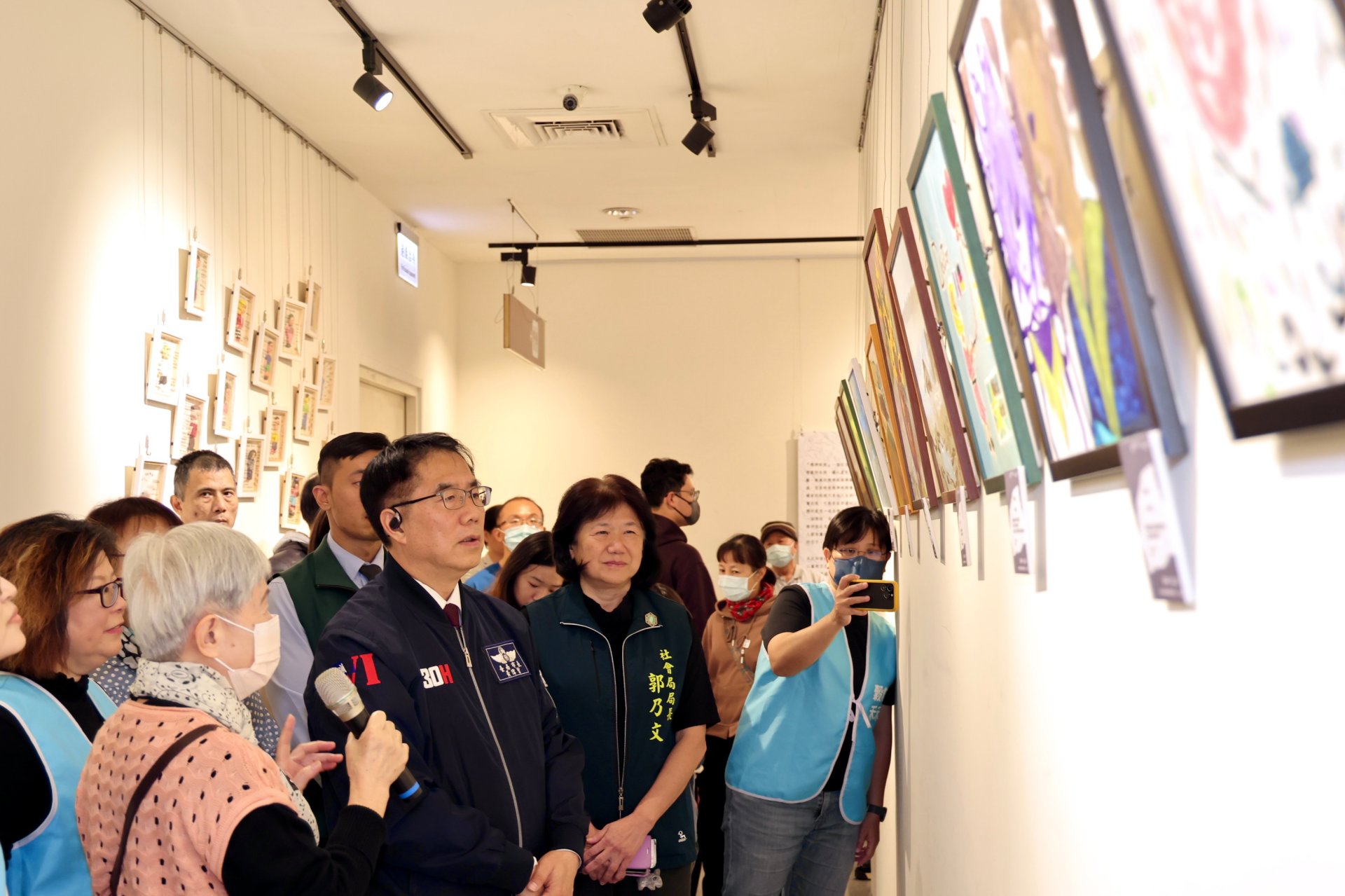 台南市長黃偉哲於4日前往南紡購物中心,參觀由台南市首處精障協作據點「知南會所」主辦的「穀粒禾禾,畫話人生」藝術展。該展覽以「隧道」為核心意象,展出多幅由精神障礙會員與家屬共同創作的油畫作品,藉由藝術創作呈現精障者從發病混亂到穩定復元的生命歷程,展現強韌的生命韌性。