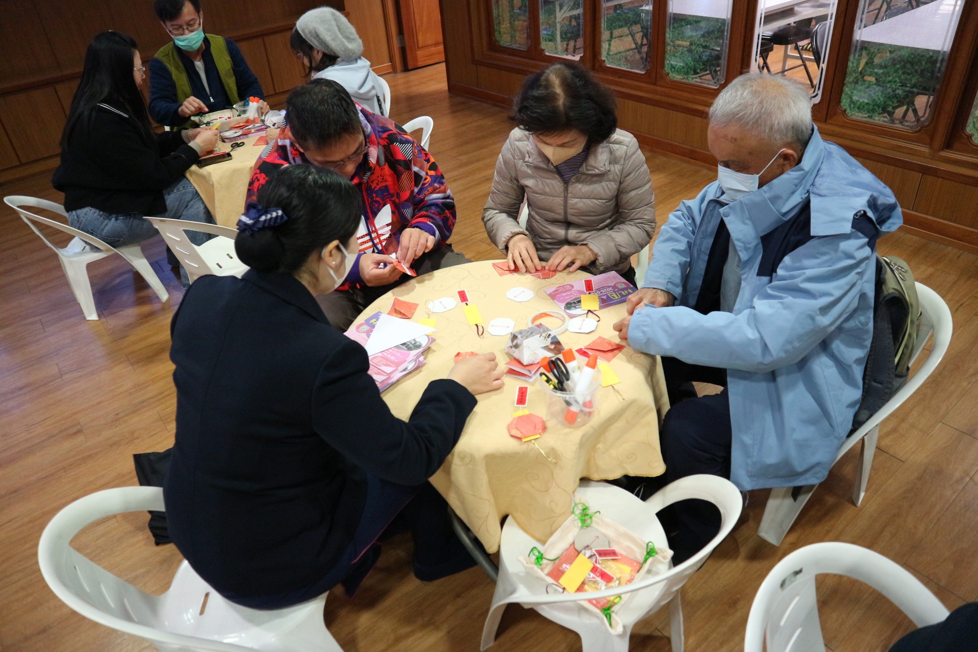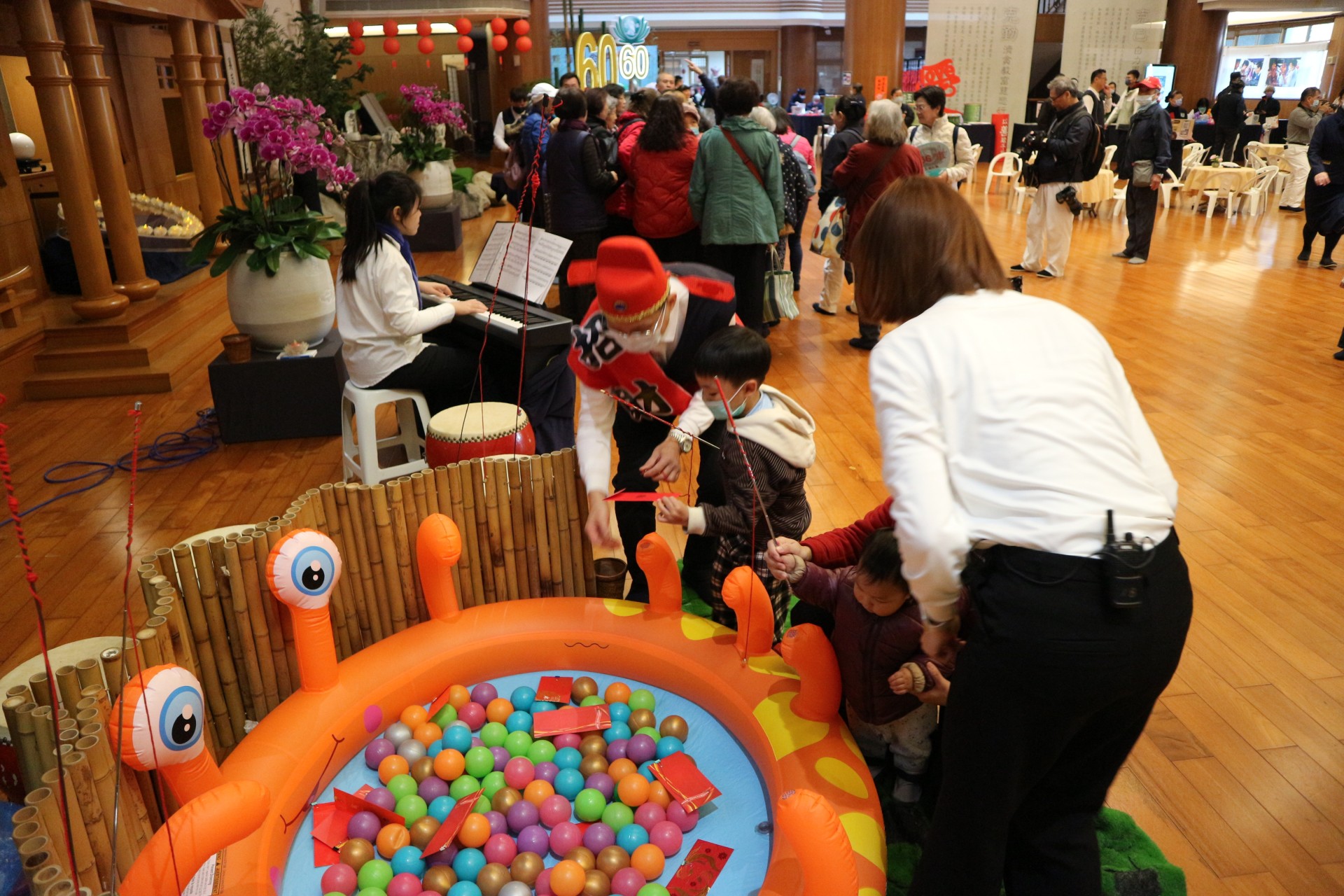 慈濟志工除了在外場規畫許多攤位與鄉親們互動,有靜思書軒小志工快閃合唱表演、九宮格投球或吸鐵釣紅包等趣味小遊戲,慈濟青年志工們也布置了心願館,邀請鄉親入內坐坐歇腳享用茶點、欣賞日本舞或是古箏的表演外,還能寫下自己的心願,為新的一年開啟新氣象!二樓的空間則是規畫DIY手作燈籠、粉彩畫體驗、手作保養品體驗等活動,讓大小朋友都能自己動手做出屬於自己獨一無二的作品,並能帶回家作紀念!