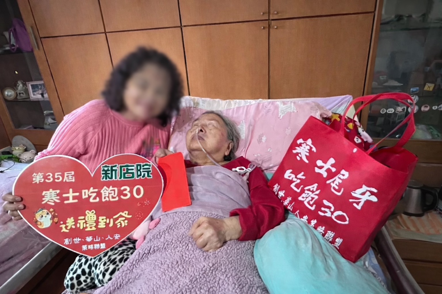 對遭逢變故的家庭而言,過年從不是團圓與期待,而是必須咬牙撐過的關卡。50年次的朱先生,有中風及高血壓病史,112年4月因跌倒腦傷而癱瘓臥床至今,由越南遠嫁來台的太太並未因此被擊倒,為了撐起這個家,擔任看護的她,一邊照顧先生及年幼的女兒,還利用空檔在家中開設家庭理髮補貼家用,毫無喘息的空間。創世基金會的「送禮到家」,在農曆年前親手送上的,不只是一份年禮與紅包,更是讓這些被生活消磨殆盡的家庭感受到「被記得」的溫暖。