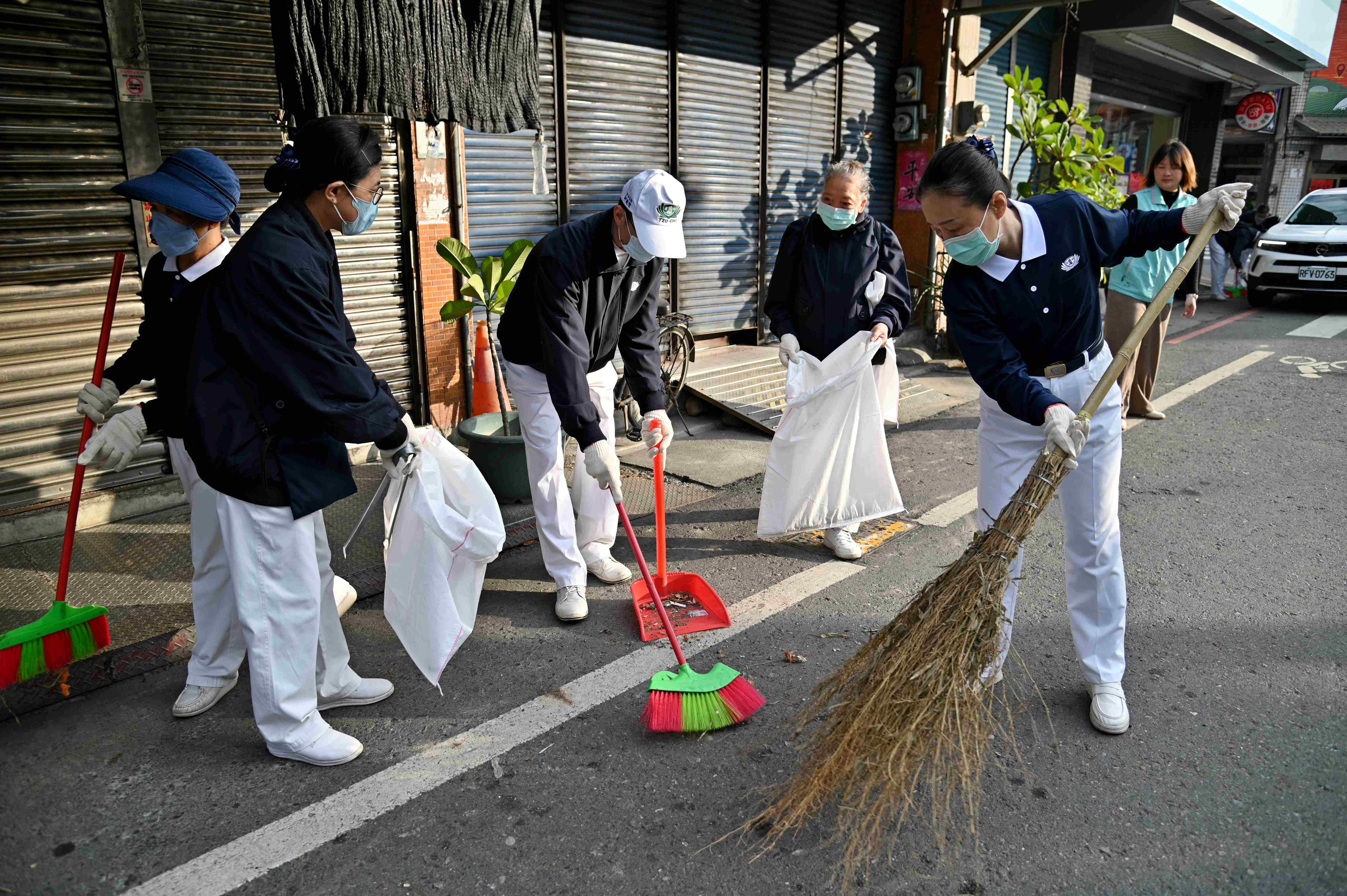 慈濟志工此次認領的街道為五結路二段,參與清掃工作有20人左右,整排穿著「藍天白雲」制服的慈濟人,分工合作,逐一將分配的區域打掃乾淨;讓五結鄉親共同迎接乾淨舒適的美好新年。