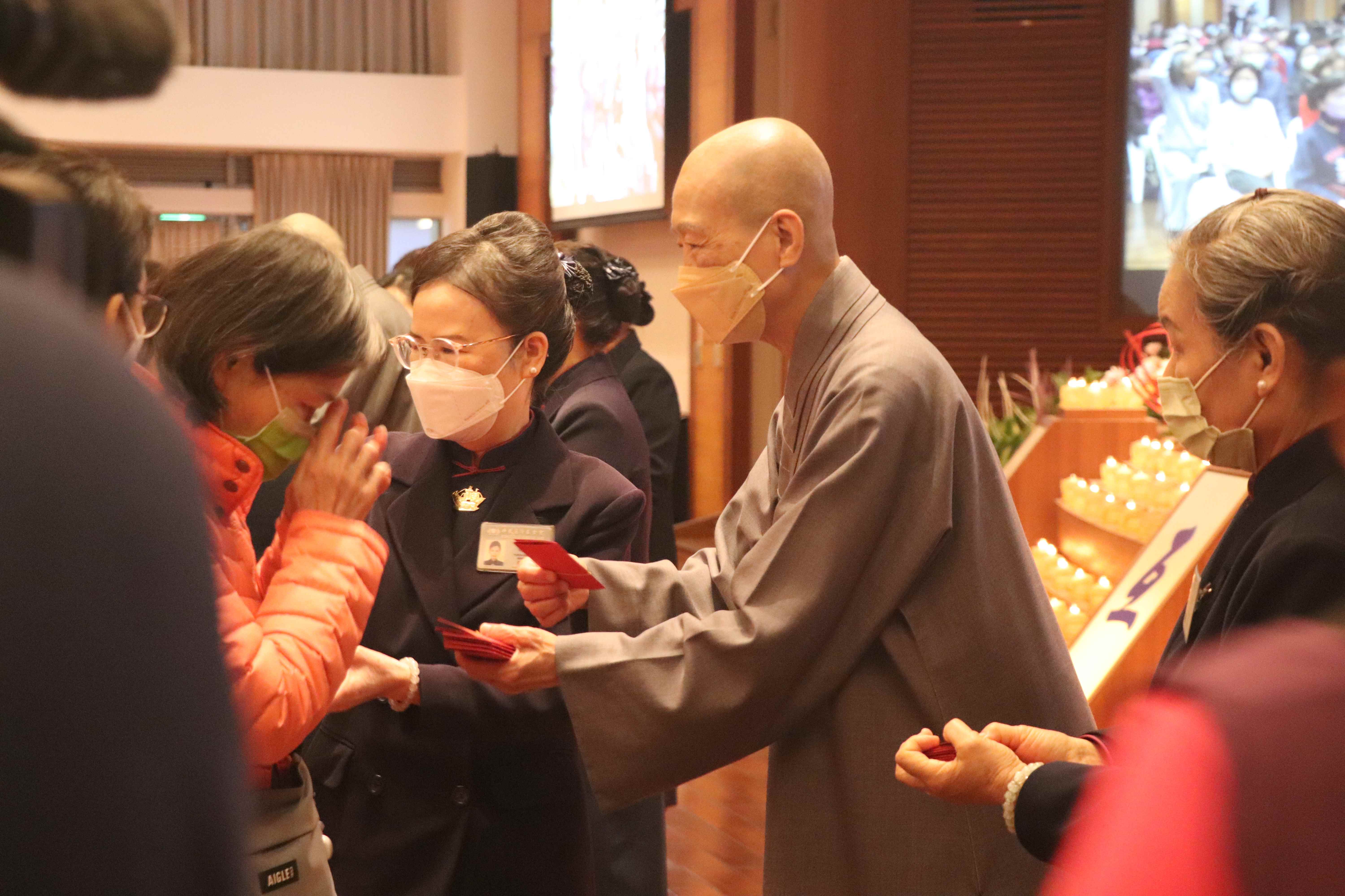 靜思精舍德勱法師、德瑼法師親臨現場發福慧紅包帶領大眾虔誠祈禱,也在會場中一一關懷志工及會眾,溫馨互動。在莊嚴佛號聲中,法師勉勵人人心想好事、廣結善緣,期待社會在更多善念匯聚下,邁向祥和安定的新一年。上百位會眾點亮心燈、領受法慧紅包,將祝福帶回家庭與社區,讓一念善心持續延續。