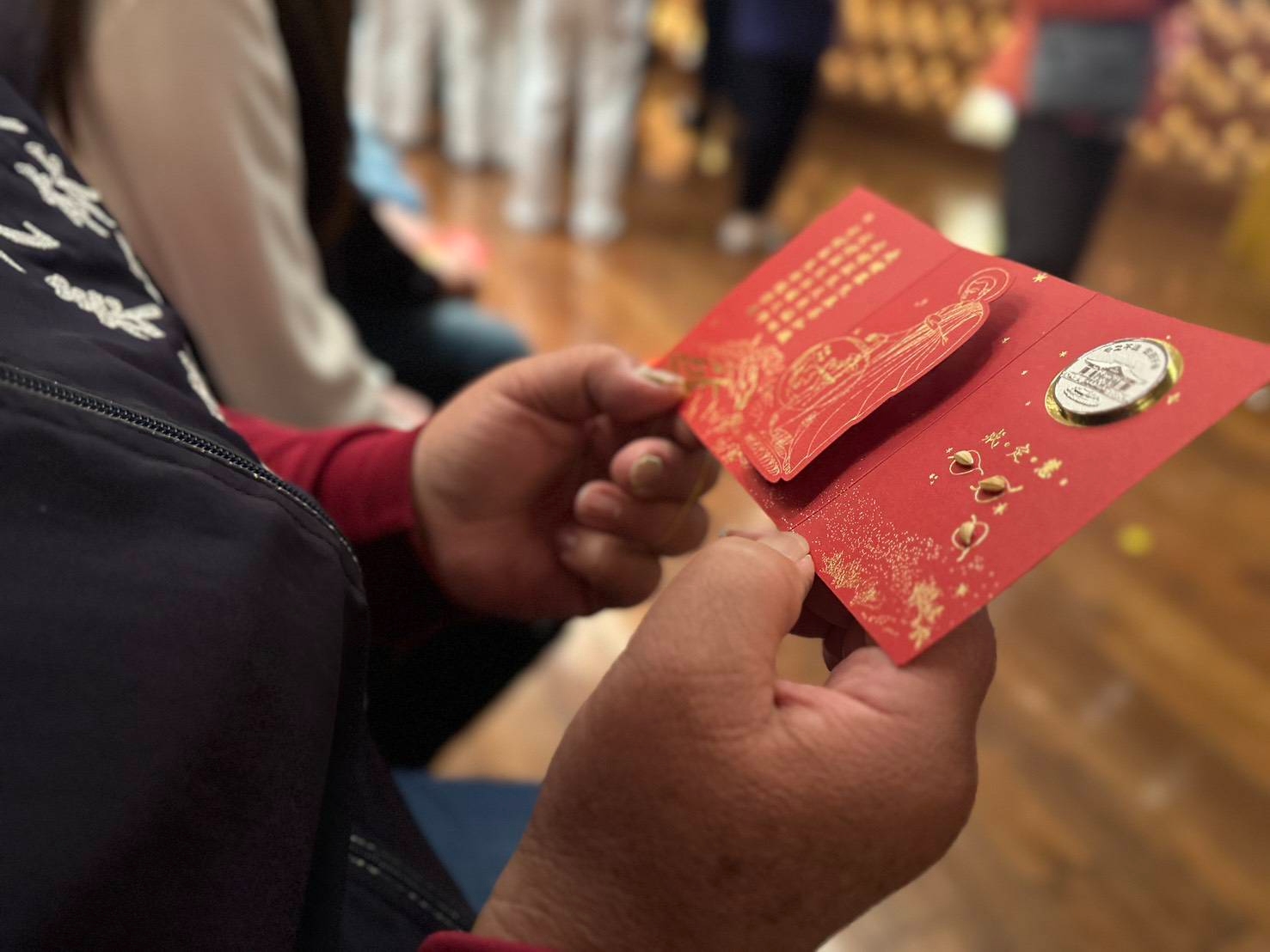 員林市民代表謝淑敏到場參與,在領受福慧紅包時仔細端詳內容,並表示更加敬佩證嚴上人長年推動的大愛精神,讓善念化為具體行動,持續為社會注入正向力量。