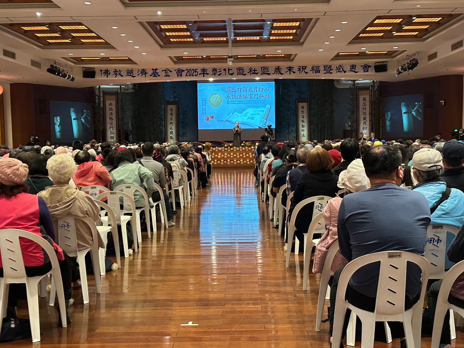 慈濟基金會2026年1月17日上午於彰化靜思堂舉行歲末祝福感恩會,感恩長期護持慈濟的會員與社區鄉親齊聚一堂,參與人數含工作人員近千人,共同在歲末時節回顧一年來走入社區、服務人群的點滴歷程。