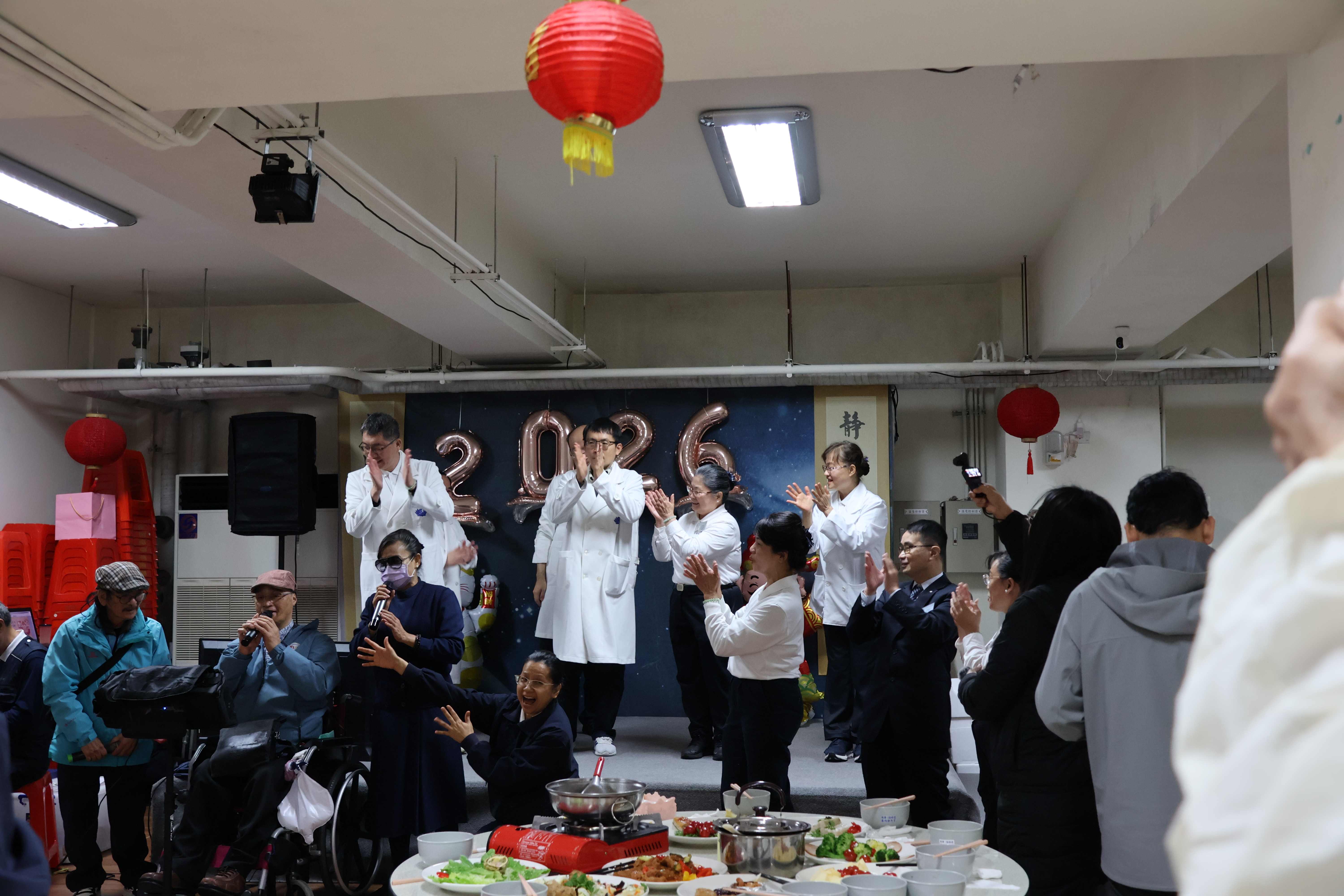 充滿年節氣氛的辦桌圍爐,一開始由人醫會醫護志工、慈濟志工以及揚善青年為大家獻上豐盛的菜餚,除了溫馨圍爐外,熱鬧活動跟著登場,除了有志工帶來懷舊金曲獻唱,青年志工們也帶來溫馨的帶動唱,期間除了穿插摸彩活動外,最後由阿福跟朋友一起為大家獻唱多首歌曲,讓鄉親帶著滿滿的祝福回家。