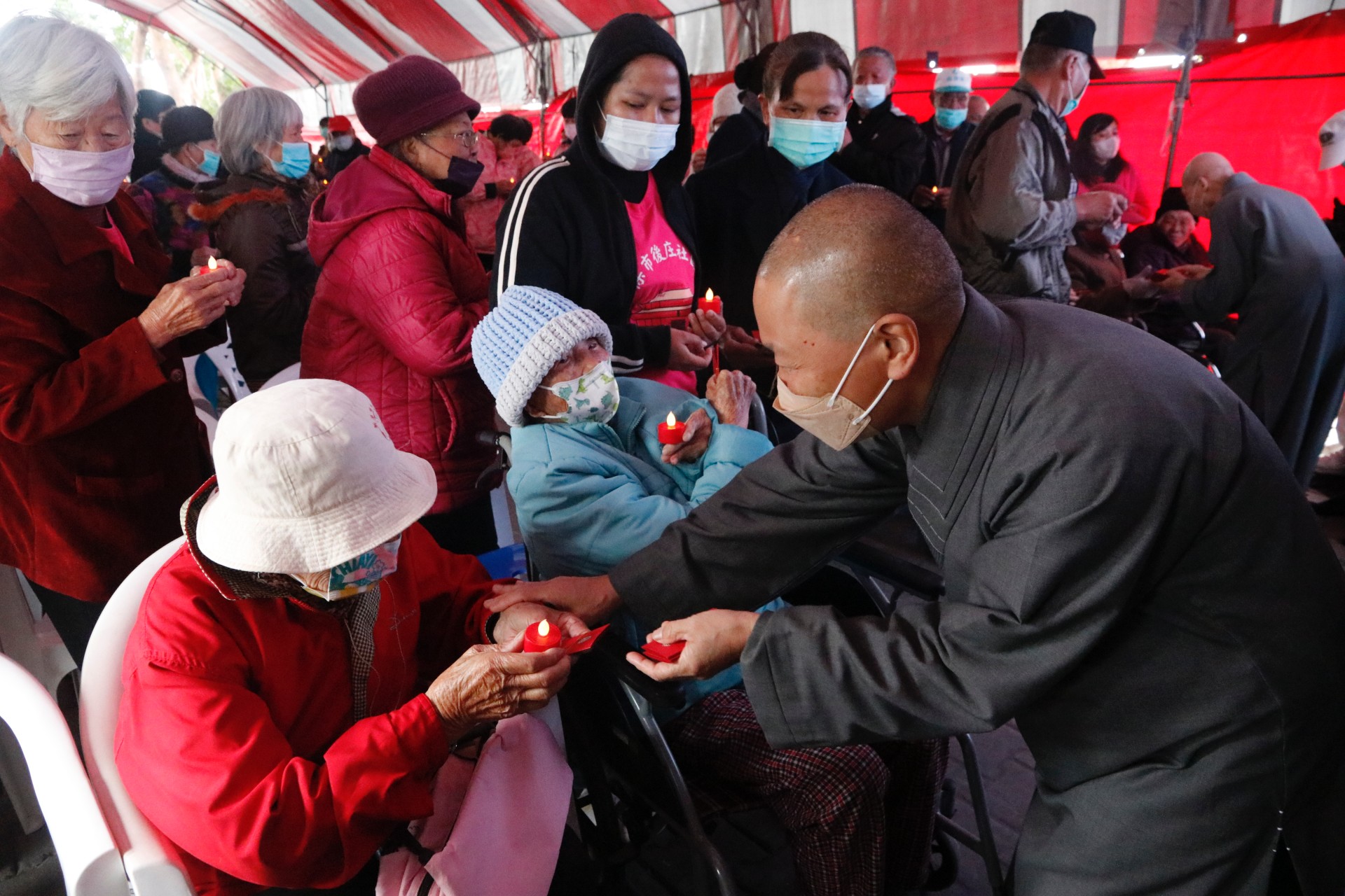 「祈禱」的歌聲從耳邊傳來,大家雙手捧燈、點亮心燈的一刻,也是精舍師父帶領大眾一起虔誠祈禱的時刻。德寰師父帶領大眾發願:「祝福大家做一個能幫助人的人,做一個能救人的人,人多力量大,用心祈求發願,大家以虔誠的心發願,願願皆圓滿,祝福大家闔家平安,萬事順利天下無災無難。」