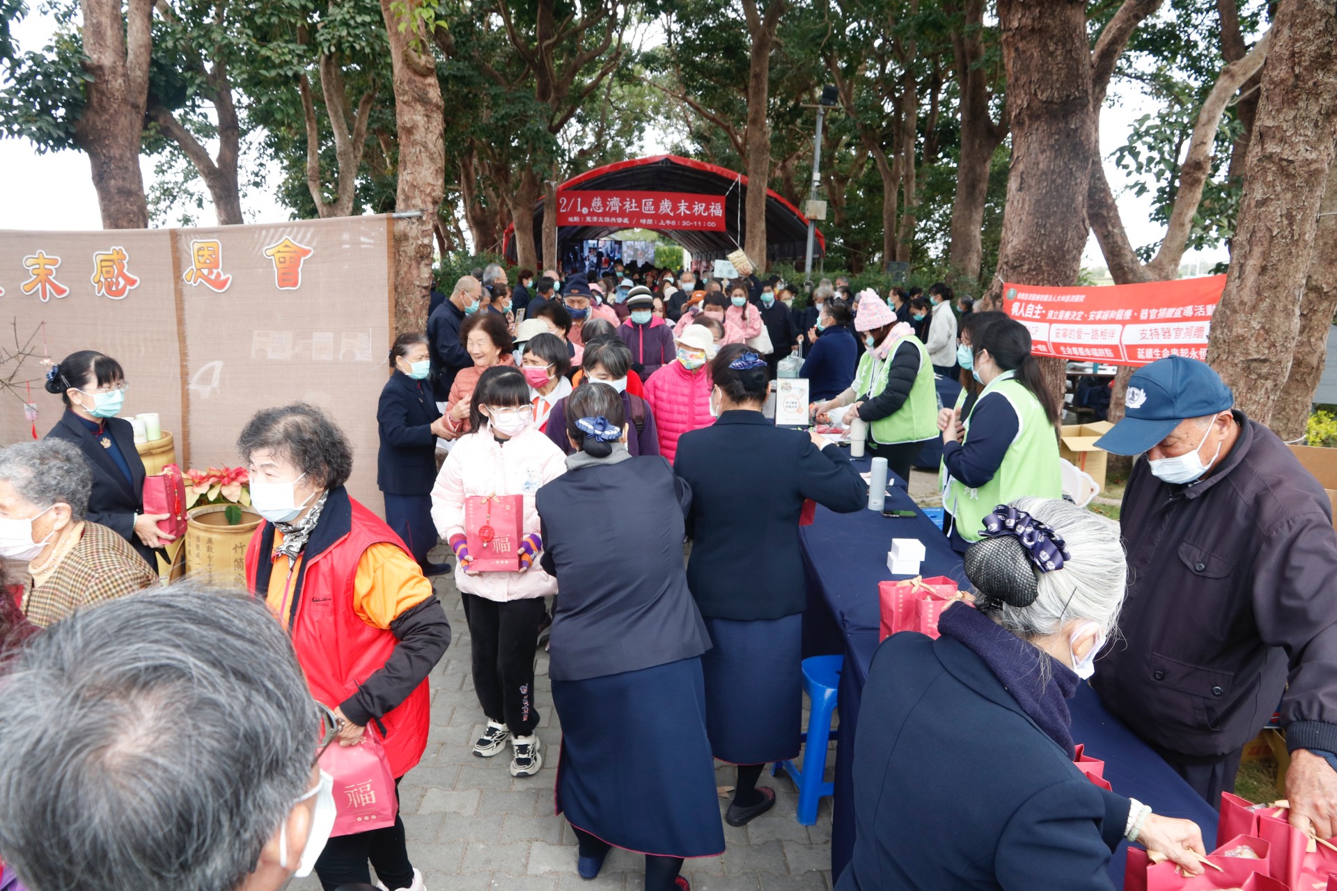 慈濟嘉義太保共修處及嘉義水上區於2月1日分別舉行慈濟社區歲末祝福,15度的低溫依舊踴入大批社區民眾祈願與接受祝福。