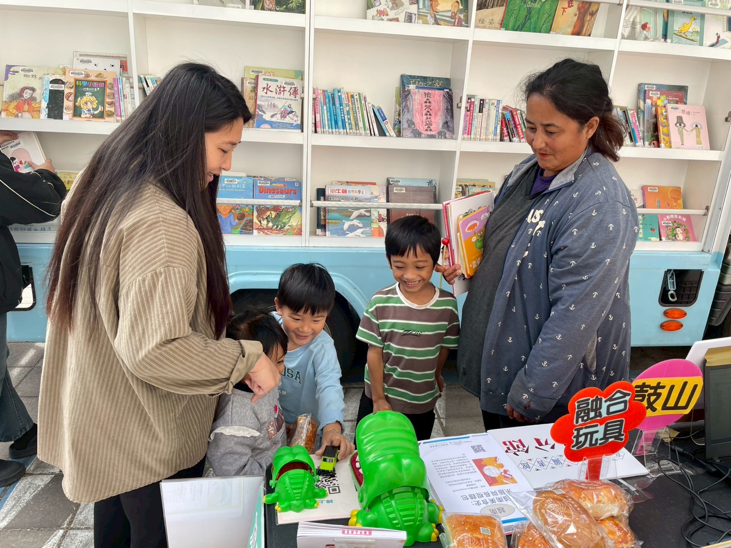 活動一早行動書車載著豐富繪本與新書抵達,即吸引不少孩童與讀者好奇圍觀、主動借閱。現場推出「借書送麵包」活動,凡借閱3本書即可獲得帕莎蒂娜烘焙坊麵包一份,每人限領一次,讓閱讀結合美味,深受親子喜愛。許多讀者或坐在角落靜靜閱讀,或挑選喜愛書籍與孩子共享親子時光。