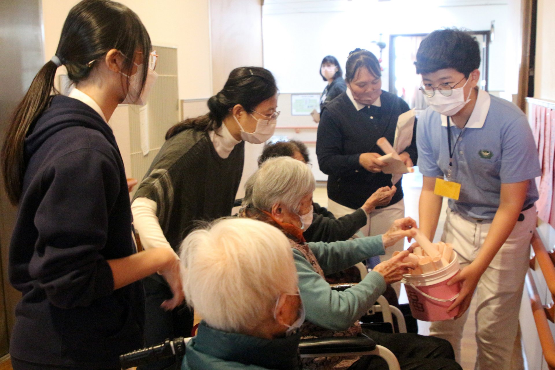祥恩分享,看到這裡的長輩行動比較不方便,希望用自己的關懷陪伴他們。「看到阿公阿嬤開心,自己也很開心!」他說,長輩平常多待在機構裡,由醫護人員照顧身體狀況,但當有活動、有人陪伴聊天時,他們臉上的笑容讓人覺得很幸福,也很感謝能有機會能陪伴他們。