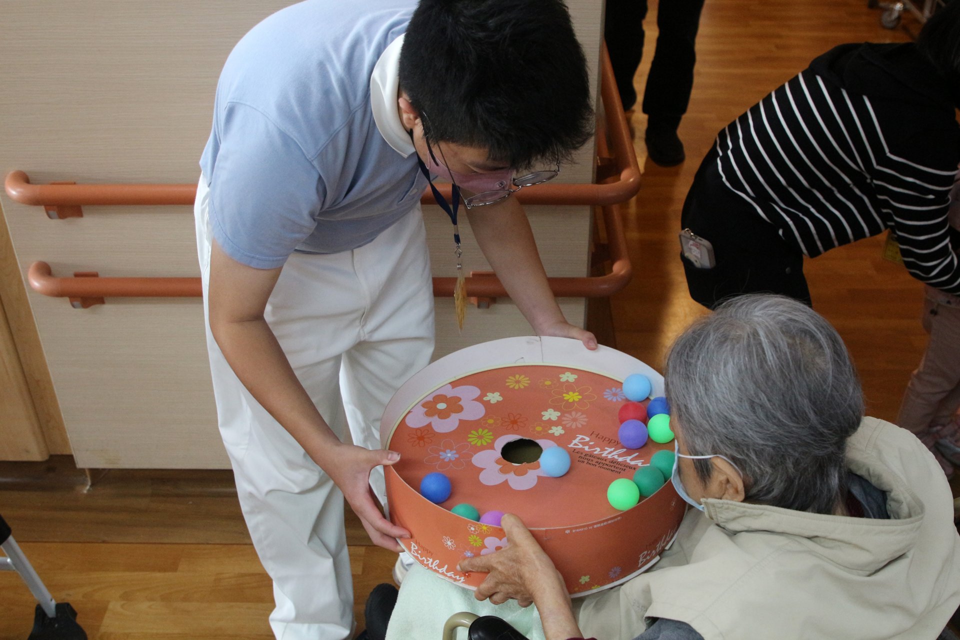 為了這次關懷行動,慈少班學員早在二月課程時就開始集思廣益,大家一起討論與設計活動內容,準備教具並反覆演練,希望帶給阿公阿嬤一個充滿互動與歡樂的時光。活動當天,現場設計了闖關遊戲、搧氣球、猜謎、畫畫與手部律動等活動,笑聲與掌聲此起彼落,讓整個輕安居充滿熱鬧氣氛。