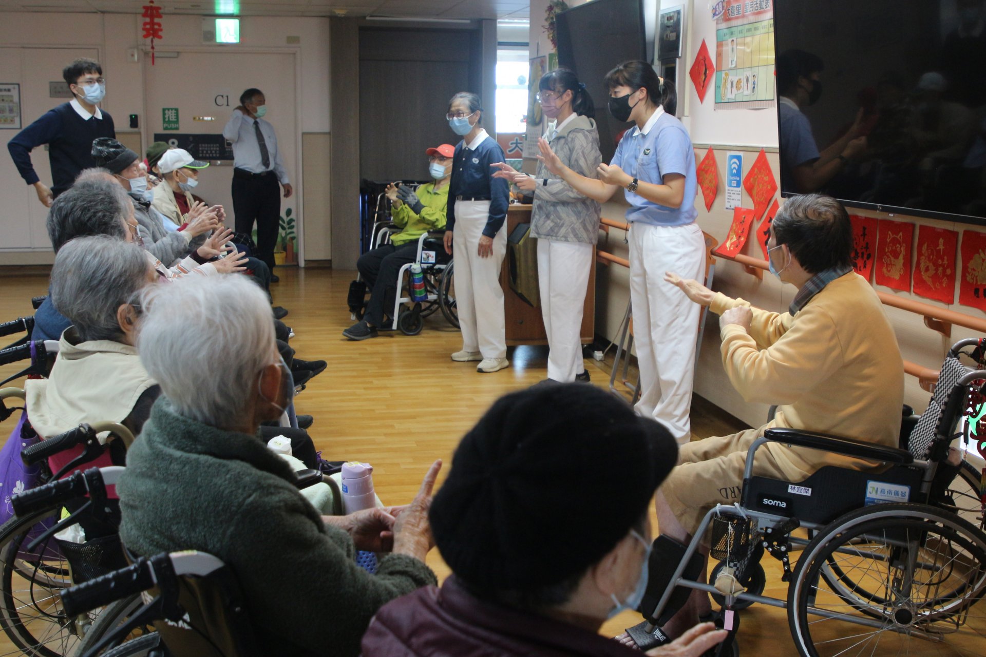 怡勳說,很多長輩平常家人不一定常來探望,大多時間都在機構裡生活,所以當大家一起活動、一起笑時,長輩都顯得特別開心。讓她印象最深刻的是,一位原本不太想參與活動的阿公,後來還是慢慢融入,有些長輩因為手部不靈活或曾受傷,但仍努力嘗試完成動作,有的人左手不方便,就用右手把手舉起來配合。看到長輩那麼努力參與,讓她非常感動。