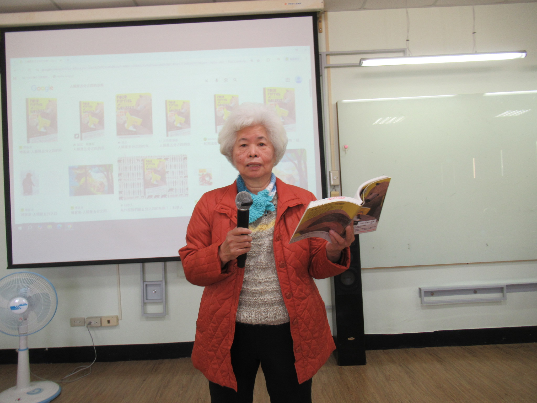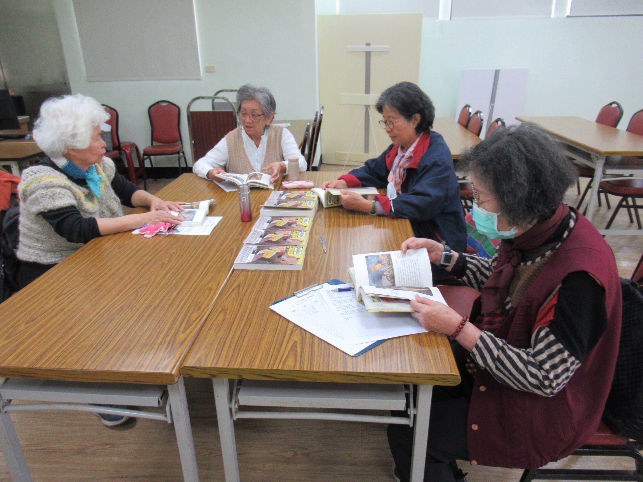 讀書會現場氣氛熱絡,成員們針對書中提及的生態案例展開深度交流。從剛果採蜜人的原始智慧到挪威虎鯨的社會化行為,皆引發讀者對於「跨物種連結」的思考。學員若薇分享,透過蜜蜂的生存現況能觀察環境健全度,體認到生物指標的重要性;學員麗馨則對灰熊「三思而後行」的特質與雜食習性印象深刻,認為這與人類高度相似,深刻體會到書名「五分之四灰熊」背後蘊含的共生寓意。