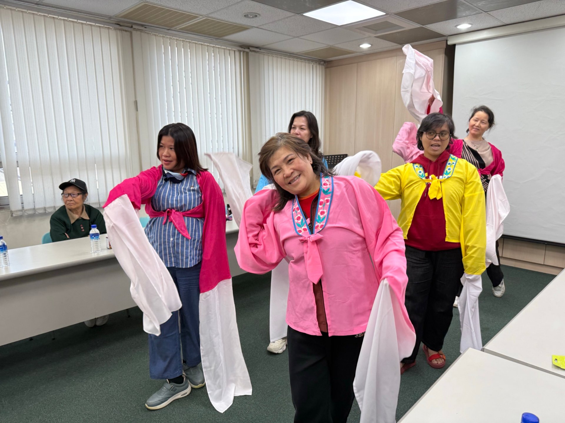 活動當日,陶卉以清唱一段越劇曲為開場,接續分享己身來臺生活適應歷程,並講解越劇的淵源以及該藝術重在化妝、手勢及腳步等面向。為加深學員們對於越劇的認識及了解,陶卉特準備五顏六色的水袖服裝讓學員們試穿,同時帶動學員們體驗越劇的各式手勢及走位。來自浙江的新住民趙玉珍女士表示:「小時候父母常常帶她觀賞越劇表演,透由這次的水袖操體驗,勾起她童年的難忘回憶」。另印尼新住民周宜葶女士也表示:「初次體驗水袖操很有趣,超開心!」最後,土地銀行為新住民及其家屬宣導反詐騙及理財等相關資訊,讓大家收穫滿滿,畫下圓滿句點。