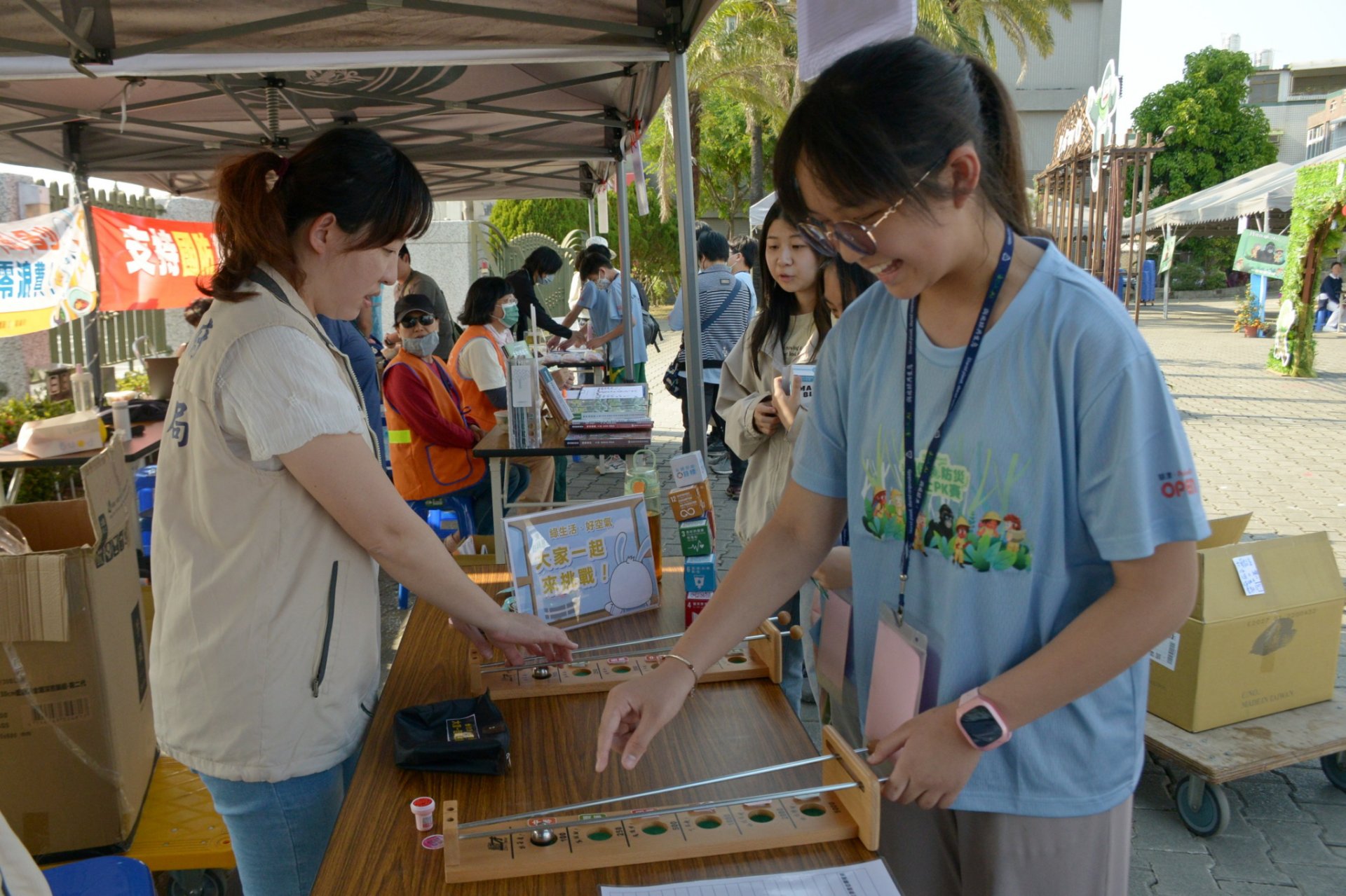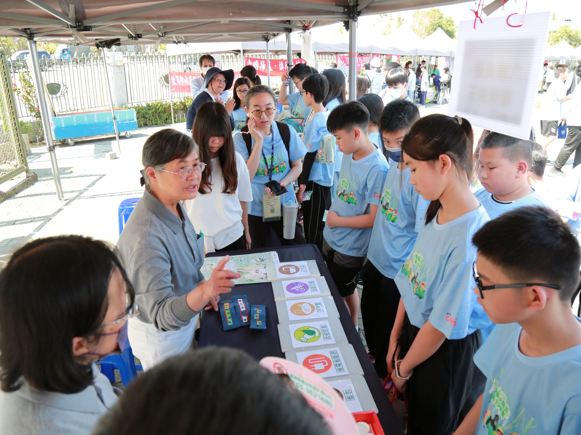 除了室內賽事,外場亦設置二十個宣導攤位,由環保局、衛生局、消防局、嘉義大學、嘉義市教育處、嘉北國小及大愛感恩科技等單位共同參與,透過互動闖關,孩子在遊戲中學習生活安全知識。