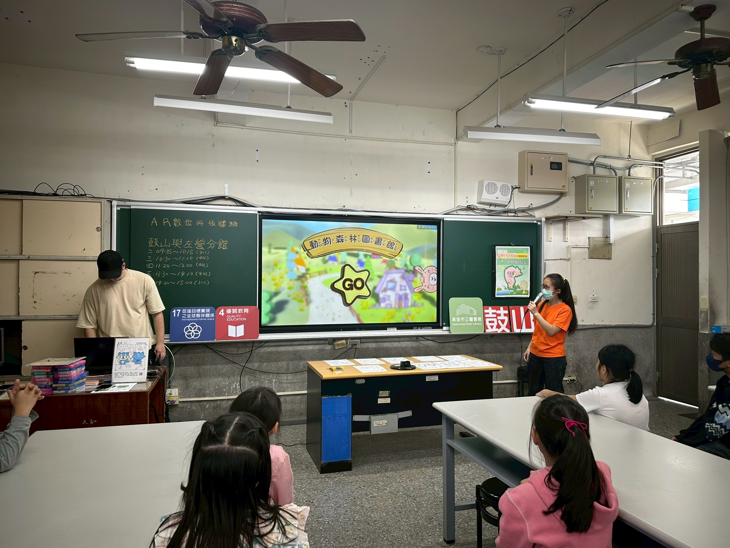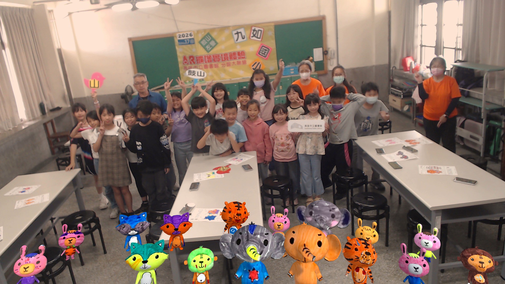 高雄市立圖書館總館於 3 月 19 日攜手鼓山及左營分館,前往鼓山區九如國小舉辦「AR 擴增實境繪本教學」活動。此次外展服務深入校園,針對中年級 5 個班級進行 5 場次體驗,由館員與志工引領學生進入結合科技與閱讀的奇幻世界。