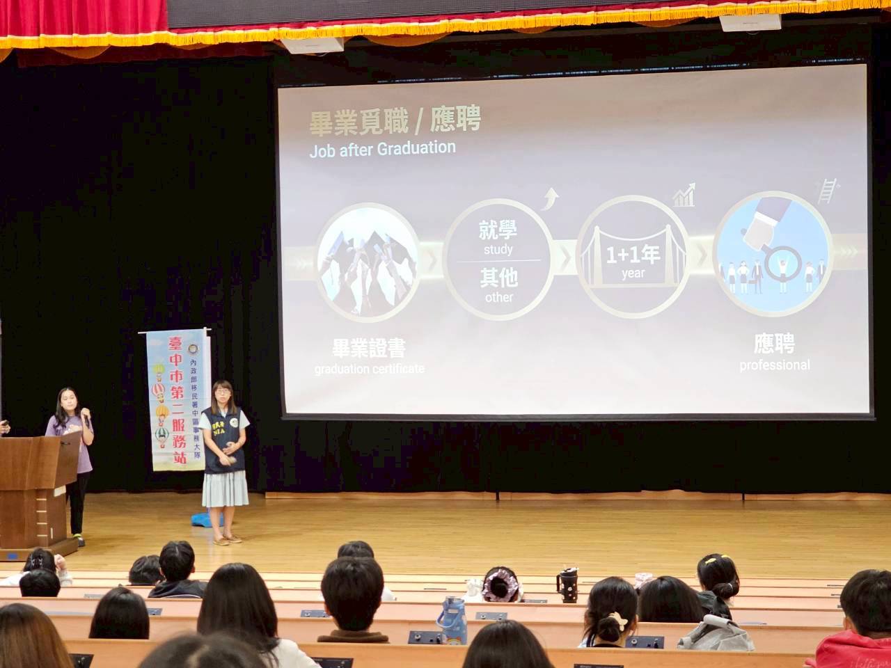 農曆年後,臺中市第二服務站的校園法令宣導活動即陸續展開,除前後前往國立勤益科技大學及中臺科技大學進行面對面交流,並於僑務委員會舉辦的「2026僑生就業博覽會」設攤,現場說明留臺就業相關規定,協助輔導他們安心留臺工作。