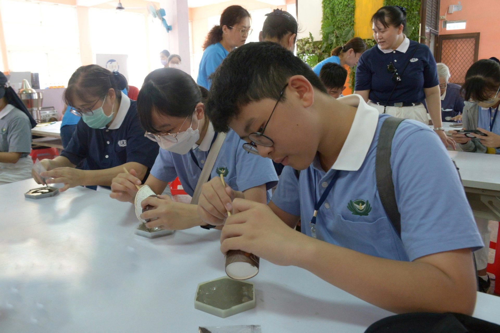 慈少班學員也進行環保手作課程,利用廢棄咖啡渣結合水泥粉與清水,攪拌後倒入模具,冷卻成型為具有質感的環保杯墊。從資源再利用的過程中,體會環境永續的實踐精神。
