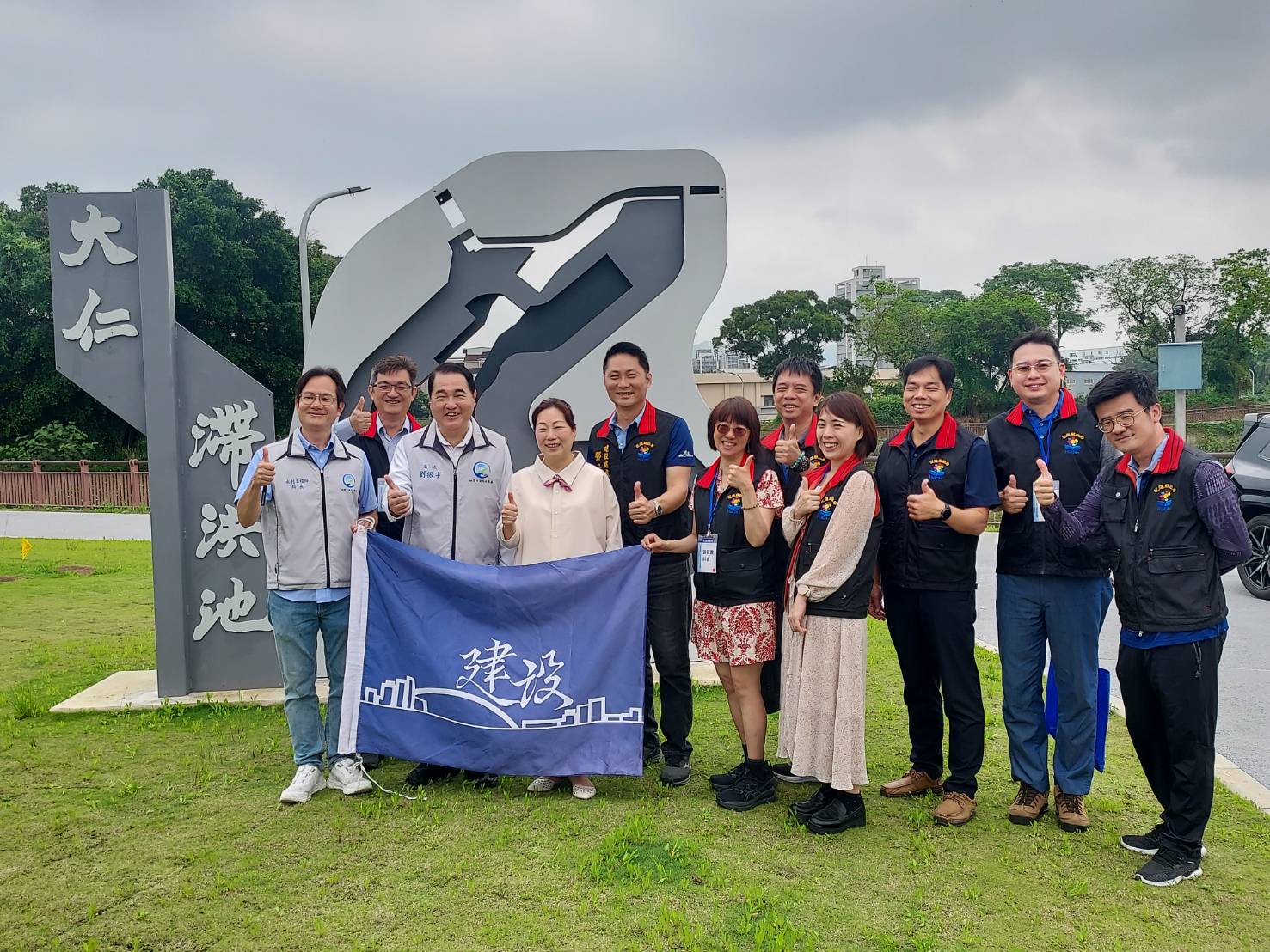 本次參訪重點包含四處具代表性之公共建設案例,包括桃園火車站後站周邊人本示範道路改善工程,透過人行道串聯、車道配置調整、路口與照明優化及標線更新等措施,全面提升人本通行安全與道路環境品質;大興西路三段與國際路口實際建築工程管理案例,了解施工安全維護、動線管制及現場管理機制,作為建築工程管理精進參考;桃園市與新北市跨縣市合作共同治理的八德區大仁滯洪池(員74B滯洪池)成功翻轉傳統剛性設計並榮獲「公共工程金質獎」肯定,完美結合「都市防洪」與「民眾休憩」,平時作為親水公園,大雨時發揮關鍵滯洪功能。其韌性設計與生態工法,落實了工程、環境與社區共好的理念,是未來規劃韌性城市極具價值的參考標竿。