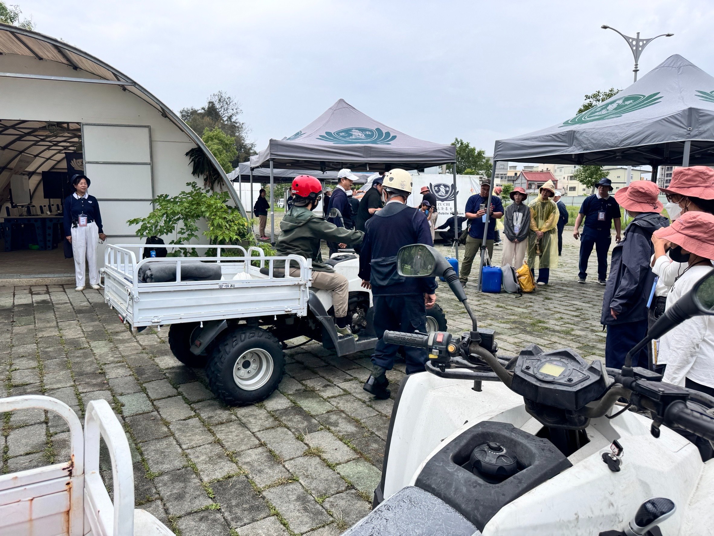 運輸通訊組除了練習使用無線電進行通訊作業,也學習駕駛ATV(全地形車),並了解相關安全措施。學員李欣儒表示,任務是運送1張福慧床、2條毛毯到指定地點。她體驗後發現,車頭操控較為吃力,即使在平坦的連鎖磚地面仍感受到明顯阻力,推想在災區環境下操作將更具挑戰性,但應該也具備良好穩定性。她認為,物資運送相當關鍵,尤其大型車輛難以進入的地區,ATV機動性高,更能發揮功能。