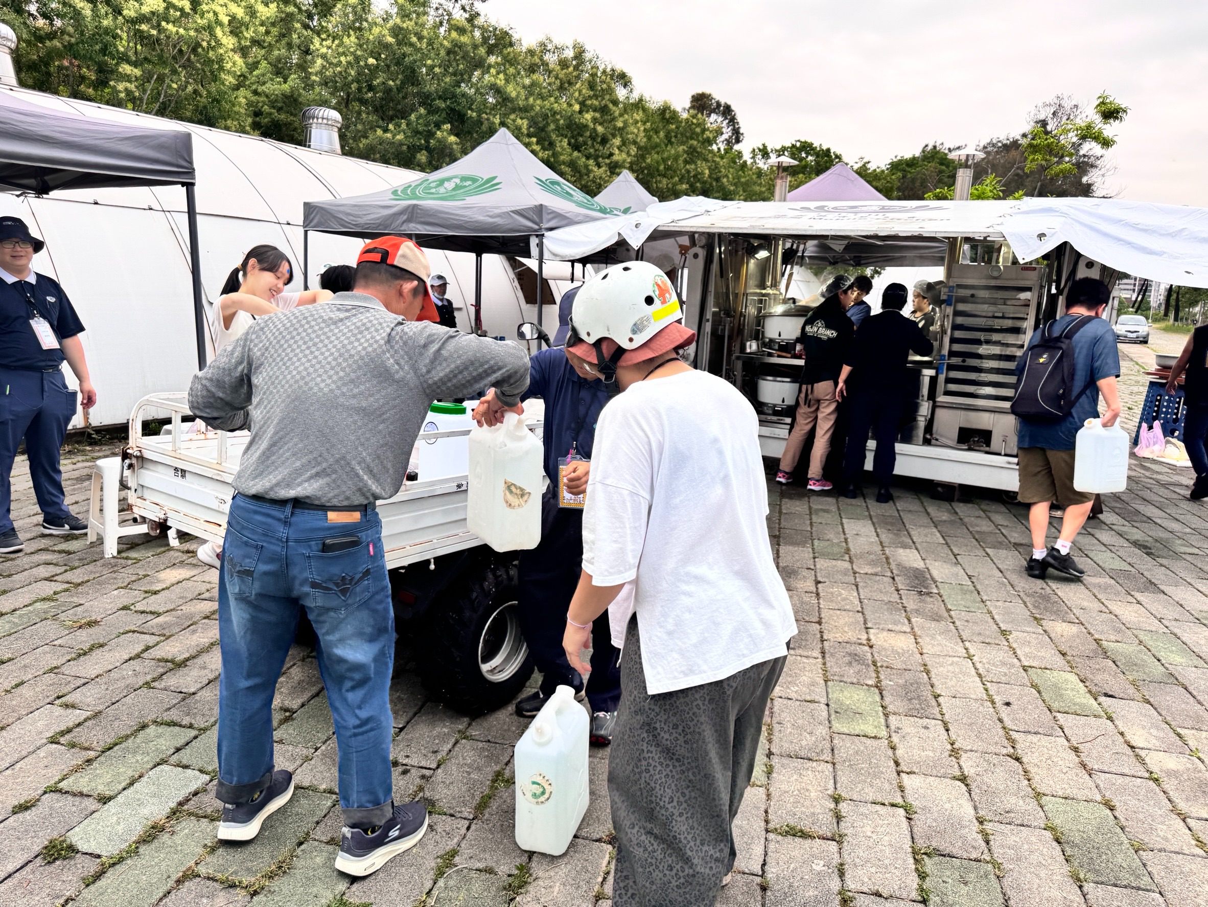 馬太鞍溪溢流後,各界湧入光復協助救災,其中不少人對慈濟便當與光復車站前的「行動廚房」留下深刻印象,「超人們」之一的學員陳俐穎也在其中。她回憶,當時擔任「勺子超人」,身穿青蛙裝在水溝中打撈淤泥,她表示,救災期間每天都能吃到慈濟準備的熱食,從便當到行動廚房現煮的羹湯、炒麵,「在水溝裡撈真的很辛苦,吃到慈濟的便當真的很好吃。」這次活動她特別報名「行動廚房組」,希望親手為大家煮羹湯。