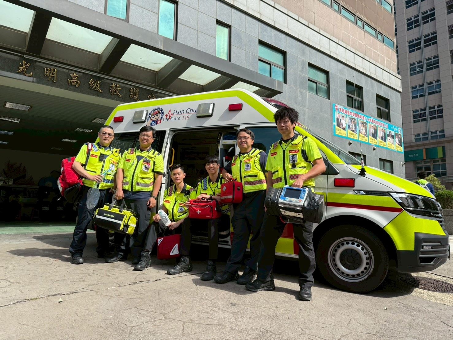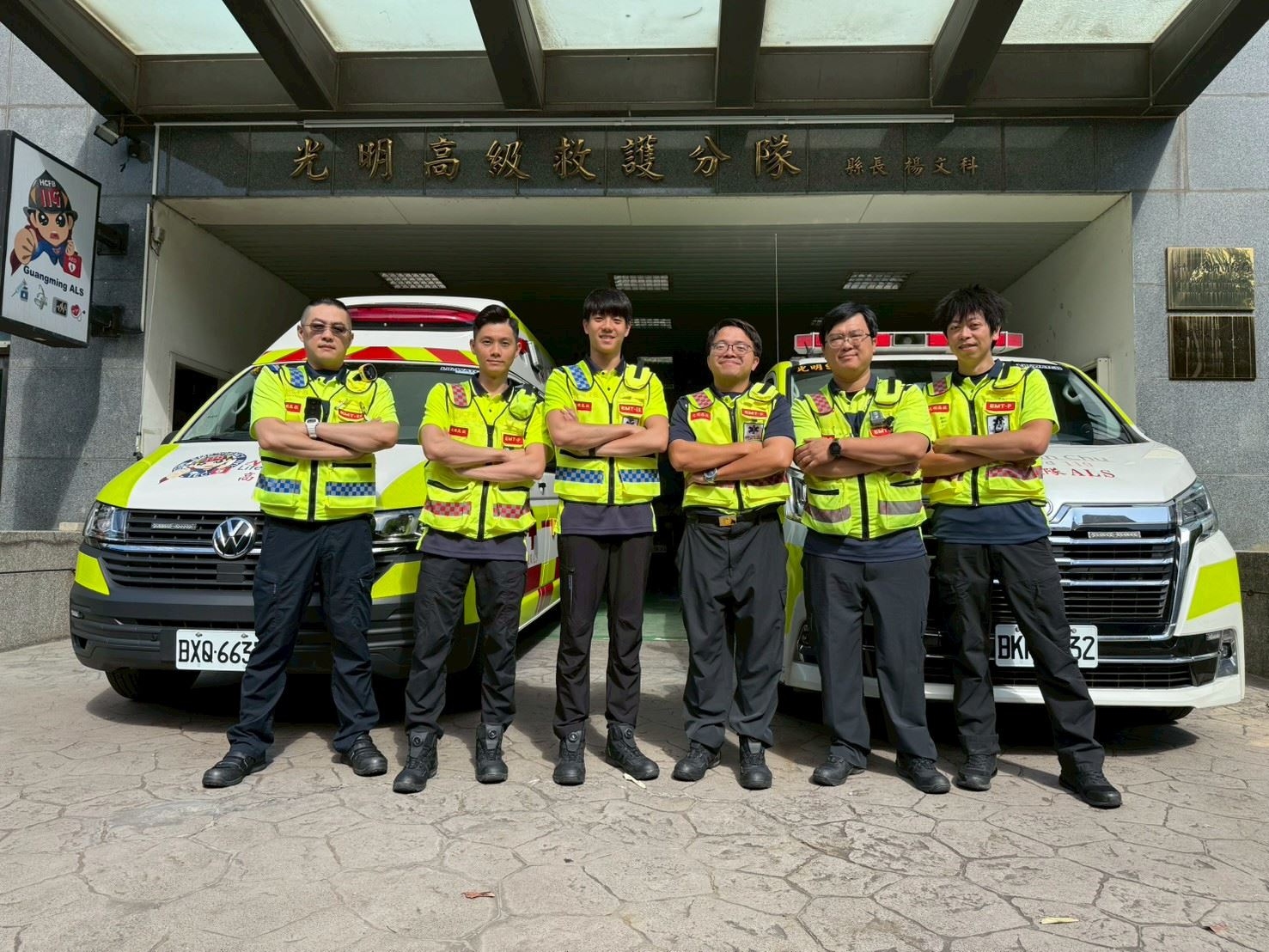 光明高級救護分隊分隊長紀翔升表示,只要是OHCA案件,消防局都會啟動「雙軌派遣」機制,同步派遣兩輛救護車支援;本案現場更出動4名高級救護技術員,以最高規格進行急救處置,替患者爭取黃金救命時間。