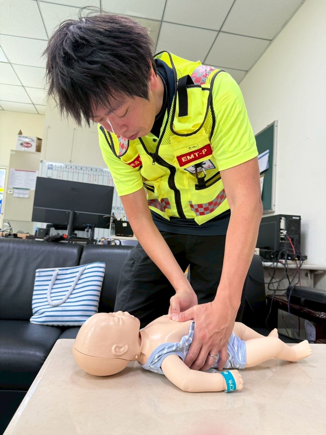 新竹縣平均每1至2個月就會發生一起嬰幼兒OHCA案件,其中最常見原因就是窒息。光明高級救護分隊高級救護技術員許育誠指出,嬰幼兒急救除了施作CPR外,「給氧」更是關鍵。本案除使用高濃度氧氣外,也使用消防局近期新採購、適合嬰幼兒的小號數進階呼吸道器材,這也是該器材首次投入實戰,便成功搶回寶貴生命。